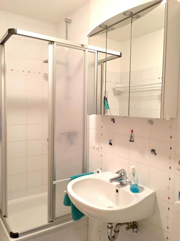 WC/Dusche mit gr. Spiegelschrank.