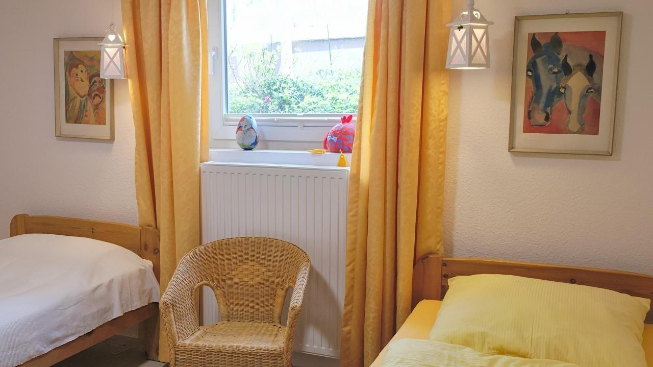 2 Schlafräume (1 Zimmer mit Doppelbett, 1 Zimmer mit getrennten Betten), Wohnzimmer mit Esstisch, separate Küche, Soda-Stream-Gerät, Thermomix, Dusche/WC, Gartennutzung im gemeinschaftlichen Garten, gemütliche Terasse mit Gartentisch und Strandkorb