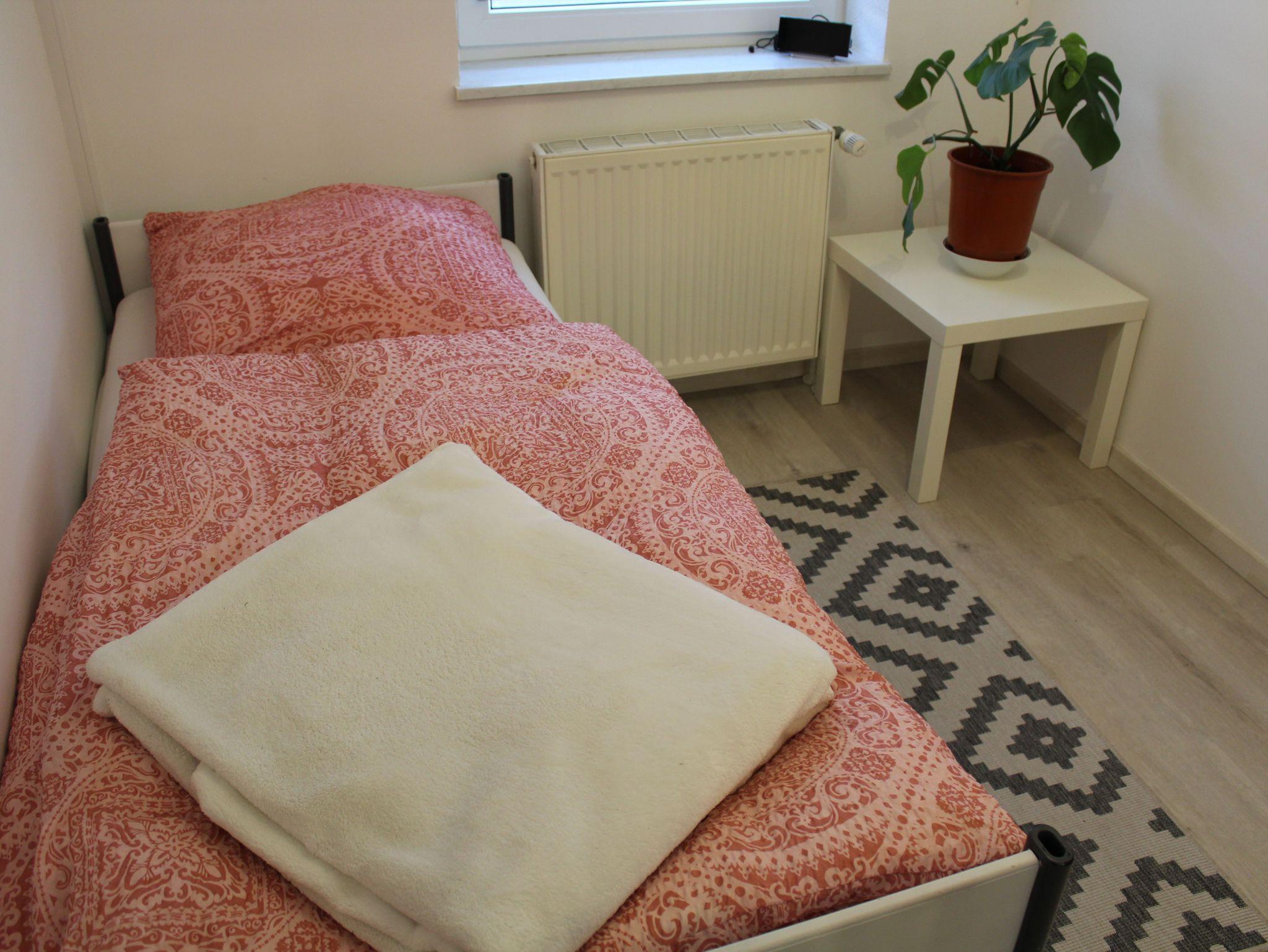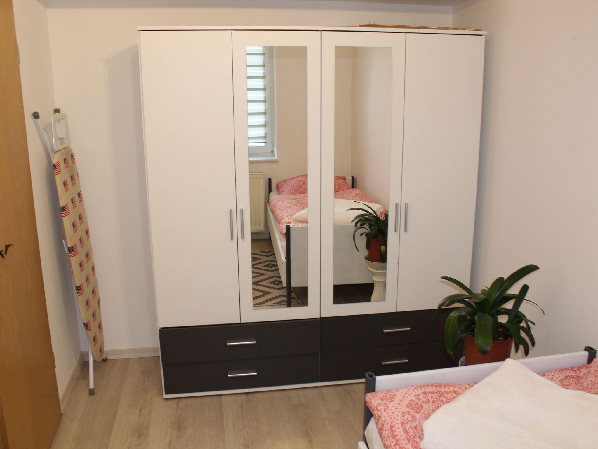 - Schlafzimmer mit Einzelbett und großem Kleiderschrank
