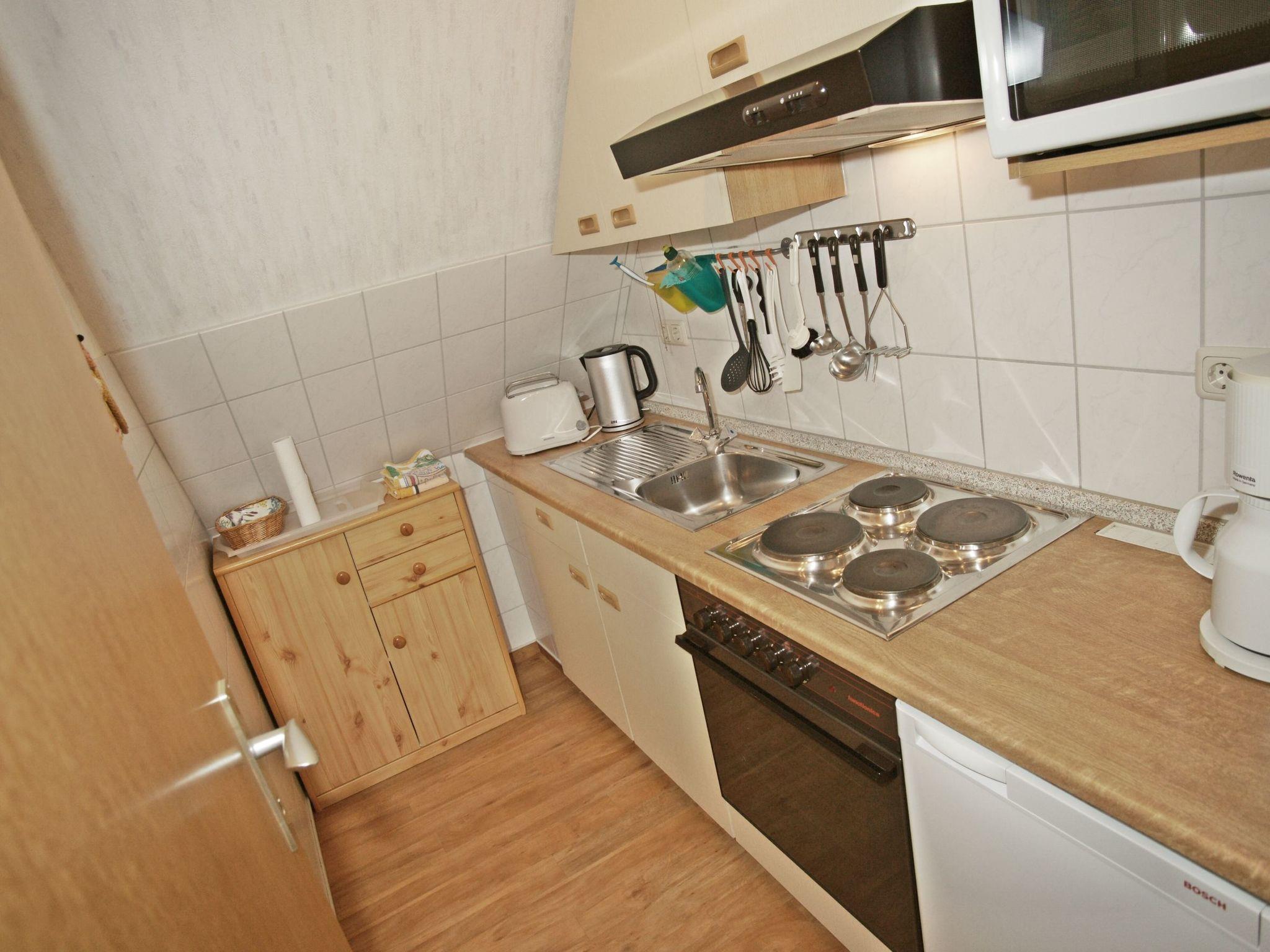 The flat consists of a bedroom, a living room and a shower room. This flat was renovated and modernised in winter 2019. The bedroom is furnished with a box-spring bed. In the living room there is space for cosy hours in front of the TV, with a couch and two armchairs. Of course, you can also enjoy your meals in the dining area. The kitchen is separate. The bathroom is equipped with a shower, hairdryer and make-up mirror. The flat has no carpet. WLAN is free of charge.