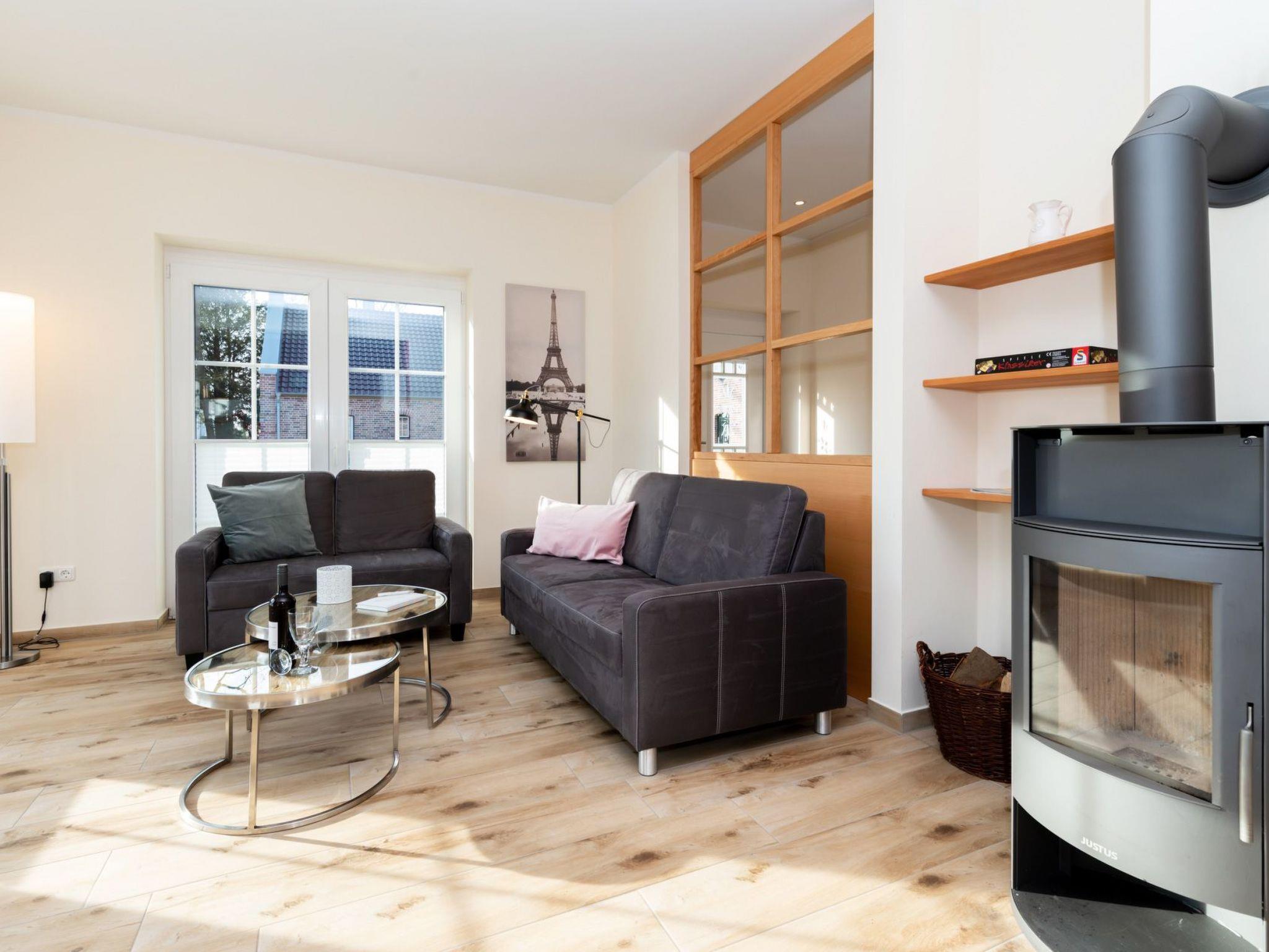 A cosy atmosphere awaits you inside the house, supported by the warming underfloor heating, which ensures comfort in every room. The technical equipment also leaves nothing to be desired: A Smart TV invites you to enjoy relaxing film evenings, while the washing machine for your sole use and a fully equipped kitchen with ceramic hob, dishwasher, filter coffee machine and kettle make your everyday life easier. Not forgetting the changing table, which is so important for child-friendly accommodation, and the inviting fireplace, which provides cosy warmth and comfort.