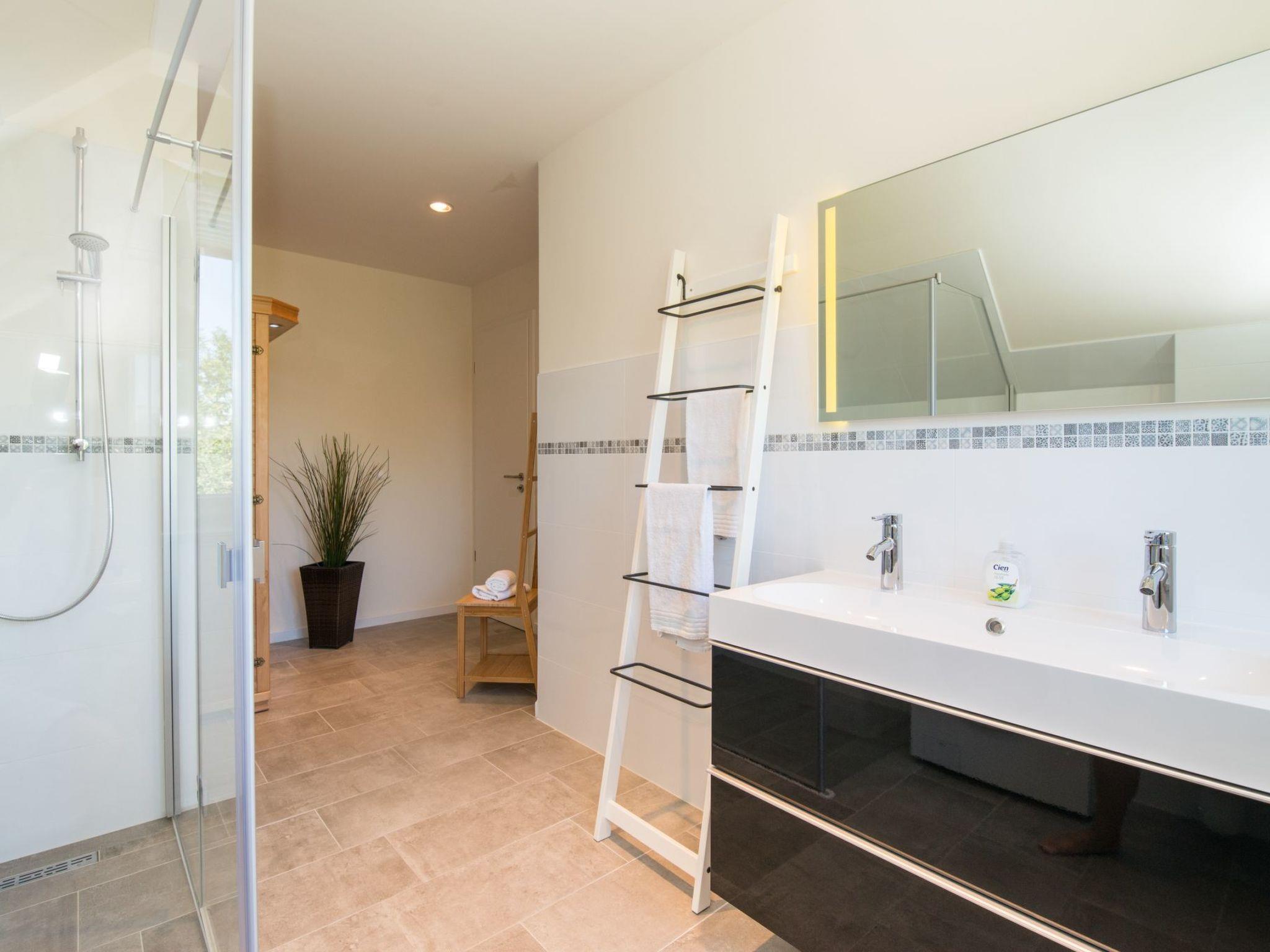 The exterior features of the holiday home are just as impressive as the interior. An inviting terrace invites you to relax and enjoy the quiet hours, while the communal garden offers plenty of space for play and leisure. For guests travelling by car, there is a charging station for electric cars. Bicycle enthusiasts will appreciate the covered and lockable bicycle storage area, which offers additional security.