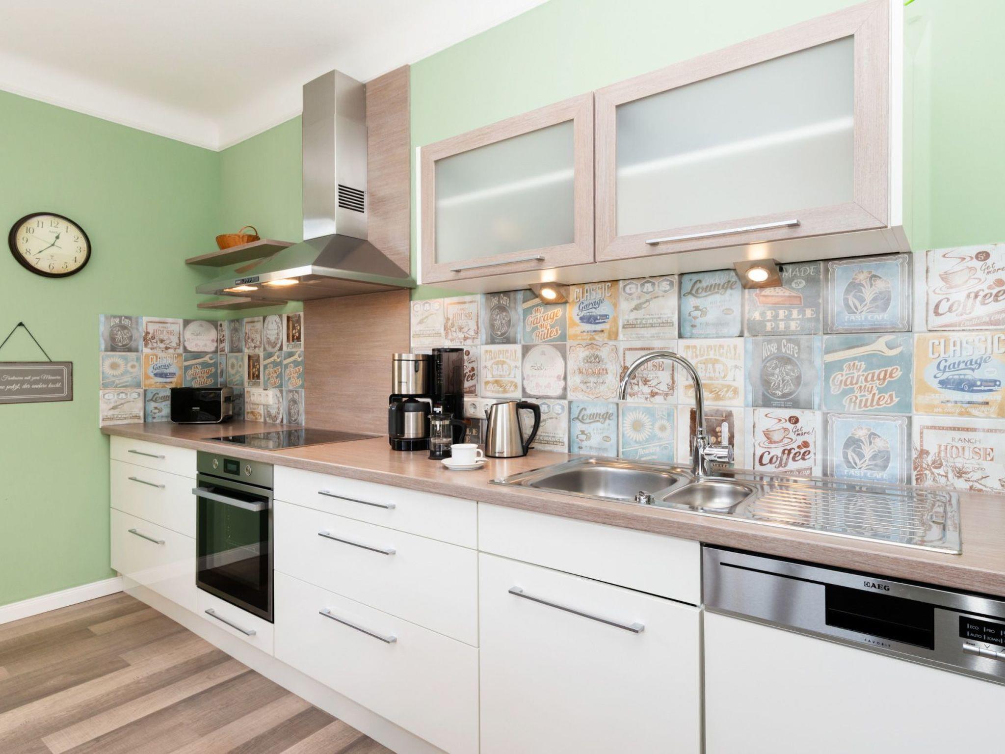 Inside, the flat offers a cosy yet modern ambience. The lovingly furnished country-style eat-in kitchen is fully equipped with all important kitchen utensils, a cooker with oven, fridge including freezer compartment, dishwasher and much more for your complete self-catering. A dining table invites you to socialise, while comfortable seating and a TV invite you to relax in the living area. The separate bedroom with comfortable double bed offers ideal conditions for a restful night's sleep; a wardrobe and the option of adding a cot are available. A modern bathroom with underfloor heating and walk-in shower completes the feel-good offer.