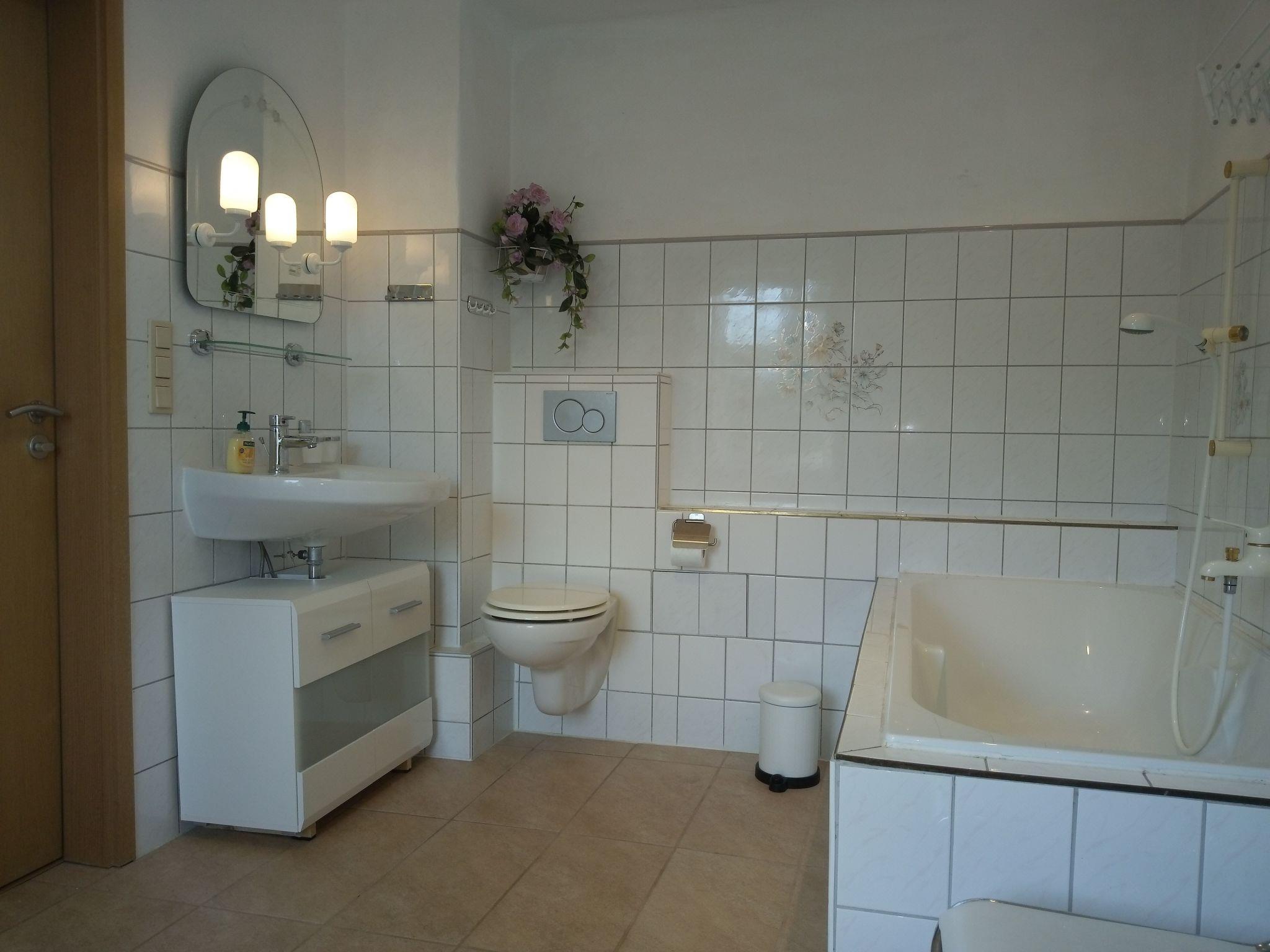 Equipment: living room: wall unit, sofa bed, extendable, table, TV each bedroom: 2 single beds, wardrobe, 2 chairs kitchen/living room: kitchenette with electric cooker, fridge, sink; dining room seating set with table, toaster, coffee machine and kettle. Bathroom: bathtub, extra shower cubicle, washbasin, WC and a second guest WC in the hallway.