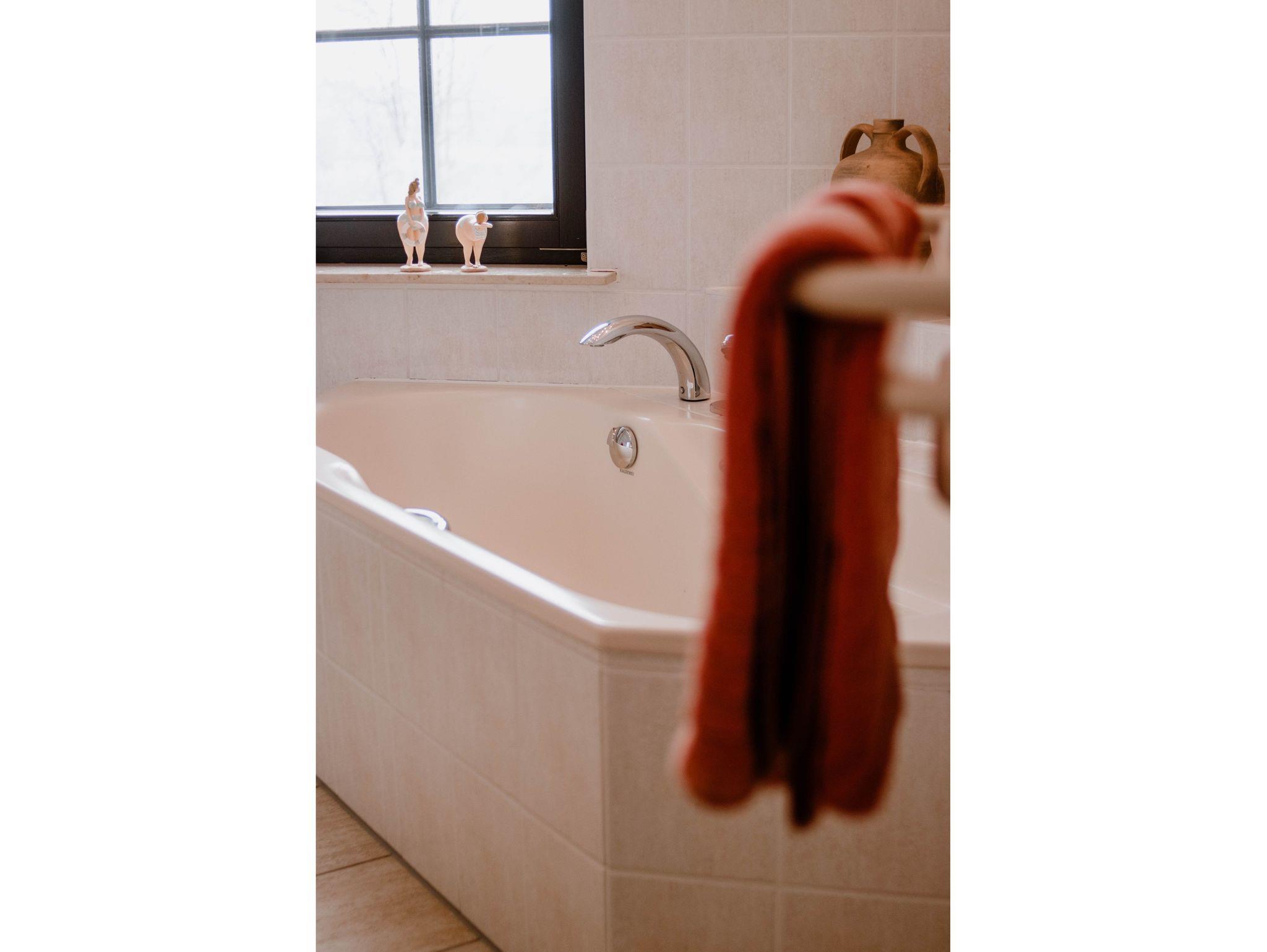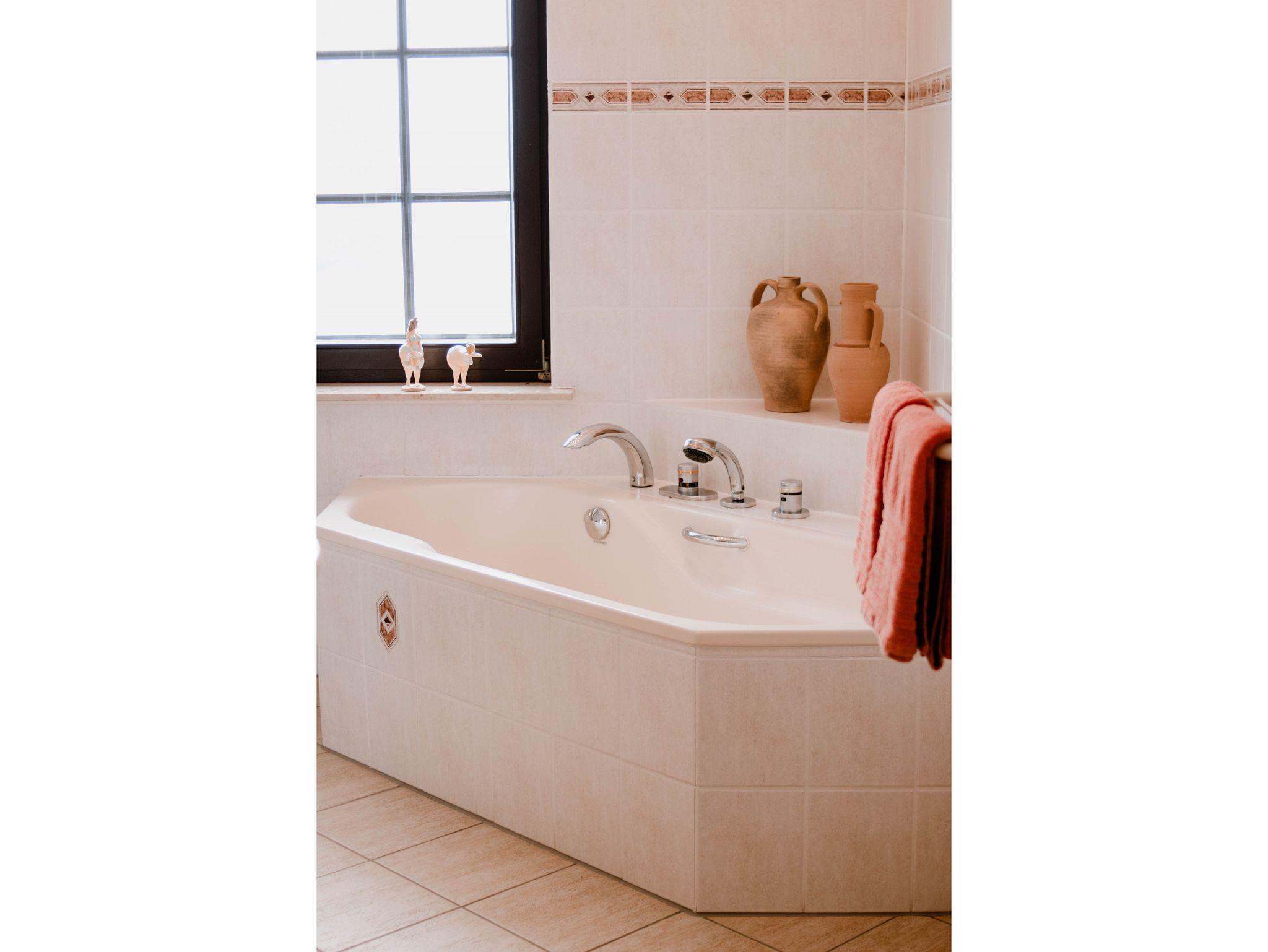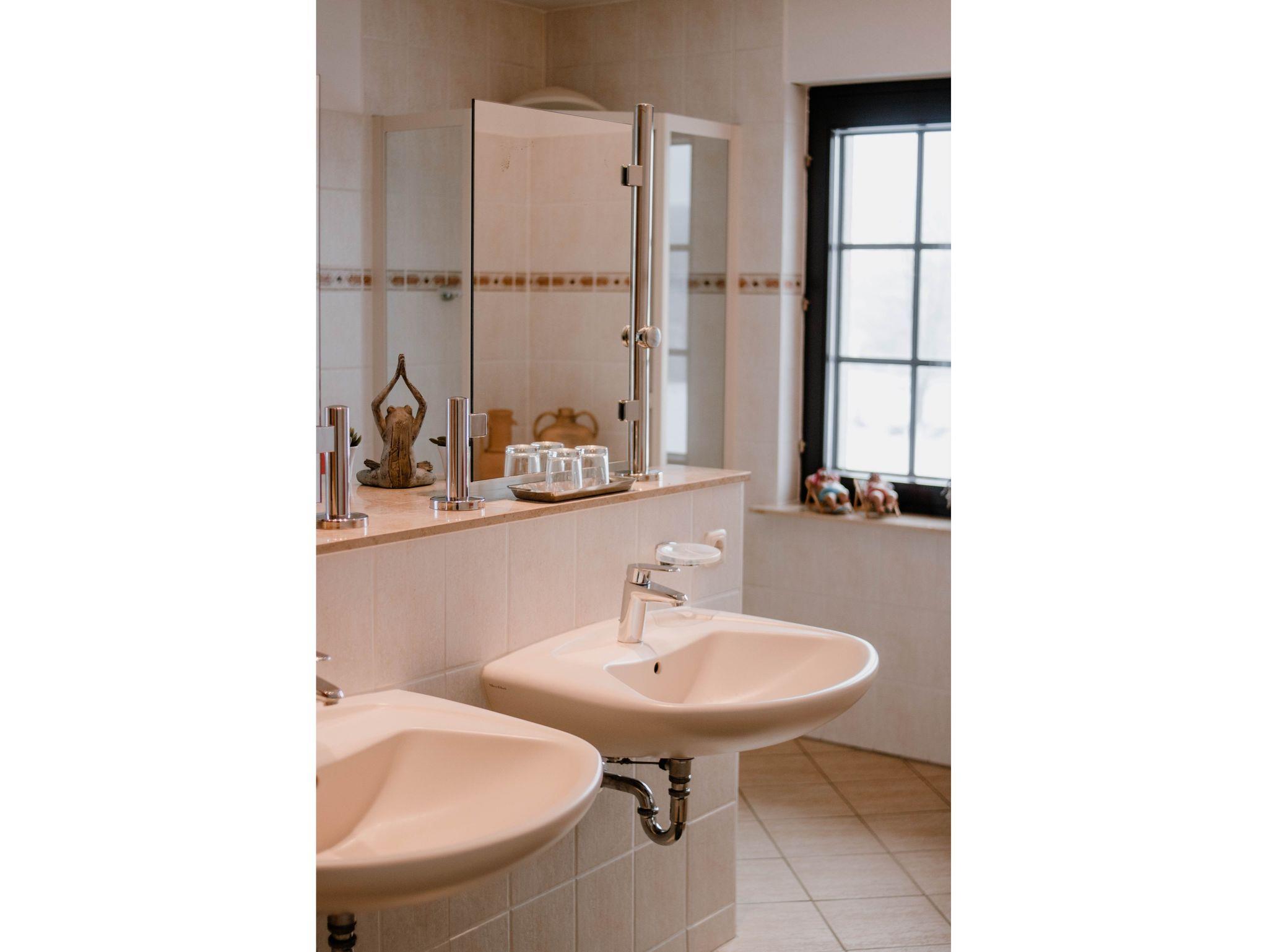 Ihr Bad im 1. OG ist mit Dusche und Badewanne sowie mit WC und 2 Waschbecken ausgestattet.