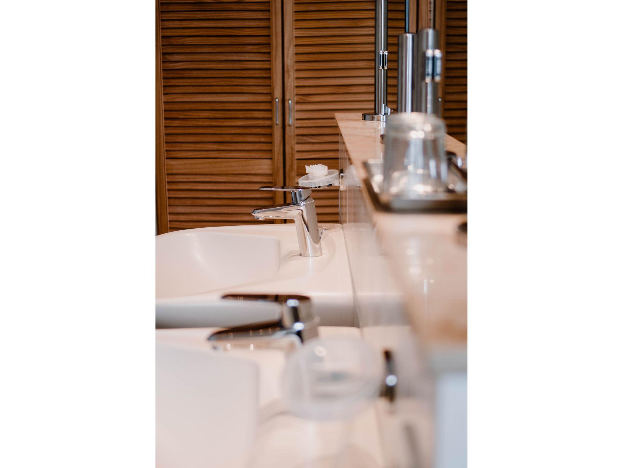 Zwei der Schlafzimmer besitzen je ein komfortables 1,80 x 2 m großes Doppelbett. Die weiteren Gäste schlafen im Einzelbett im kleinen 3. Schlafzimmer oder im 4. Schlafzimmer mit separatem Duschbad im Erdgeschoss der Wohnung.