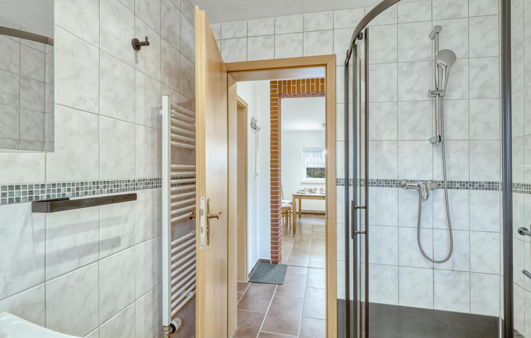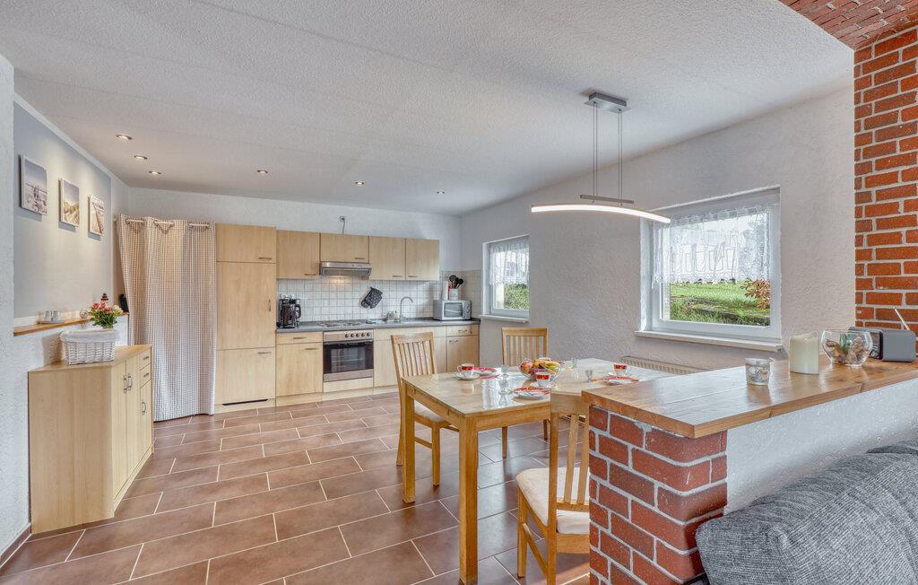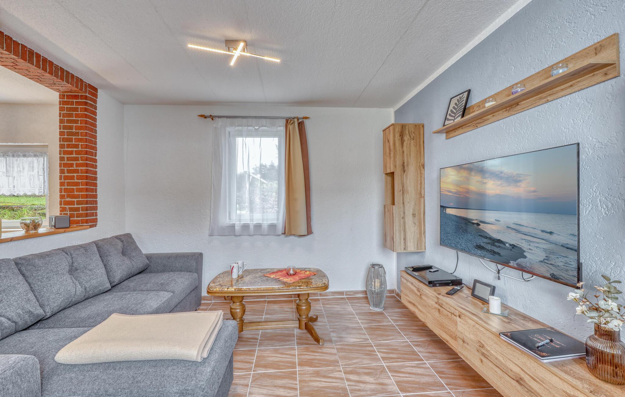 Den koselige ferieleiligheten ligger i en låve som ble ombygd i 2010, separat på eierens store boligeiendom i bydelen Bansin Dorf. Østersjøstranden ligger ca. 1,5 km unna. Den nærliggende Gothensee er et naturreservat med et bredt sivbelte og kan ikke brukes til turisme. Leiligheten har kombinert stue/spisestue (polstret sittegruppe inkl. sovesofa, TV, radio, spiseplass), soverom (dobbeltseng, barneseng kan legges til), kjøkkenkrok med elektrisk komfyr og mikrobølgeovn, dusj/WC, sentralvarme. Det er en møblert terrasse, grill, barnestol, sykkeloppbevaringsrom, parkeringsplass og lekeplass for barn. Den totale prisen inkluderer: Sengetøy, håndklær, vann- og energiforbruk, sluttrengjøring.