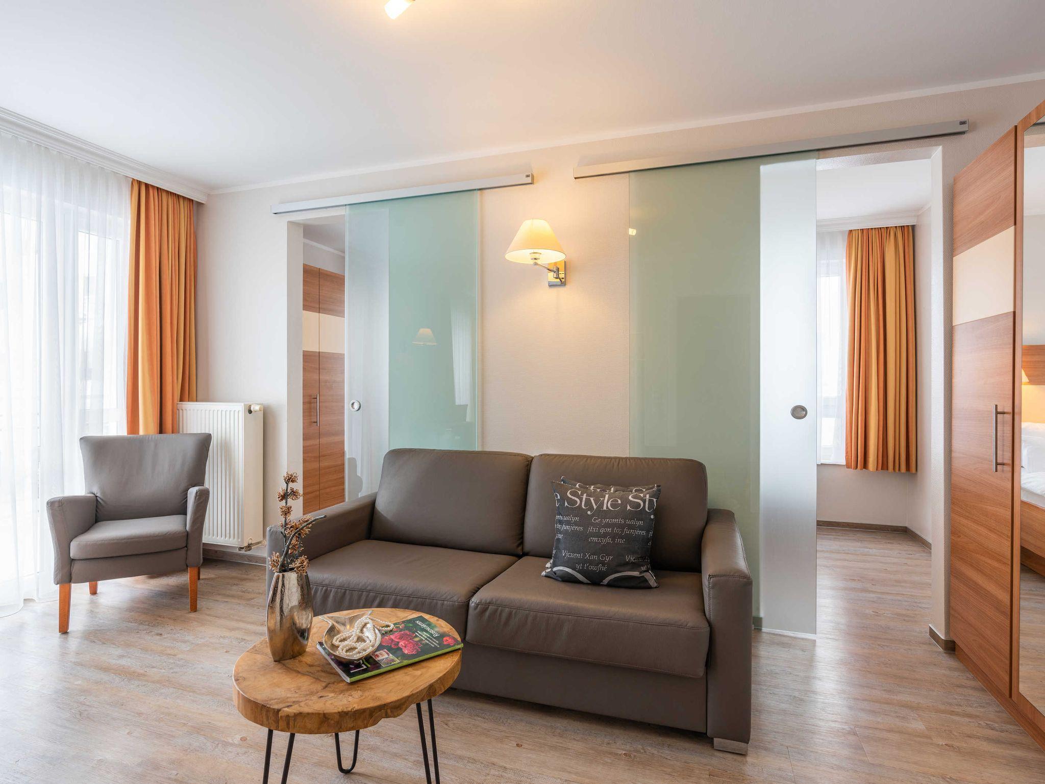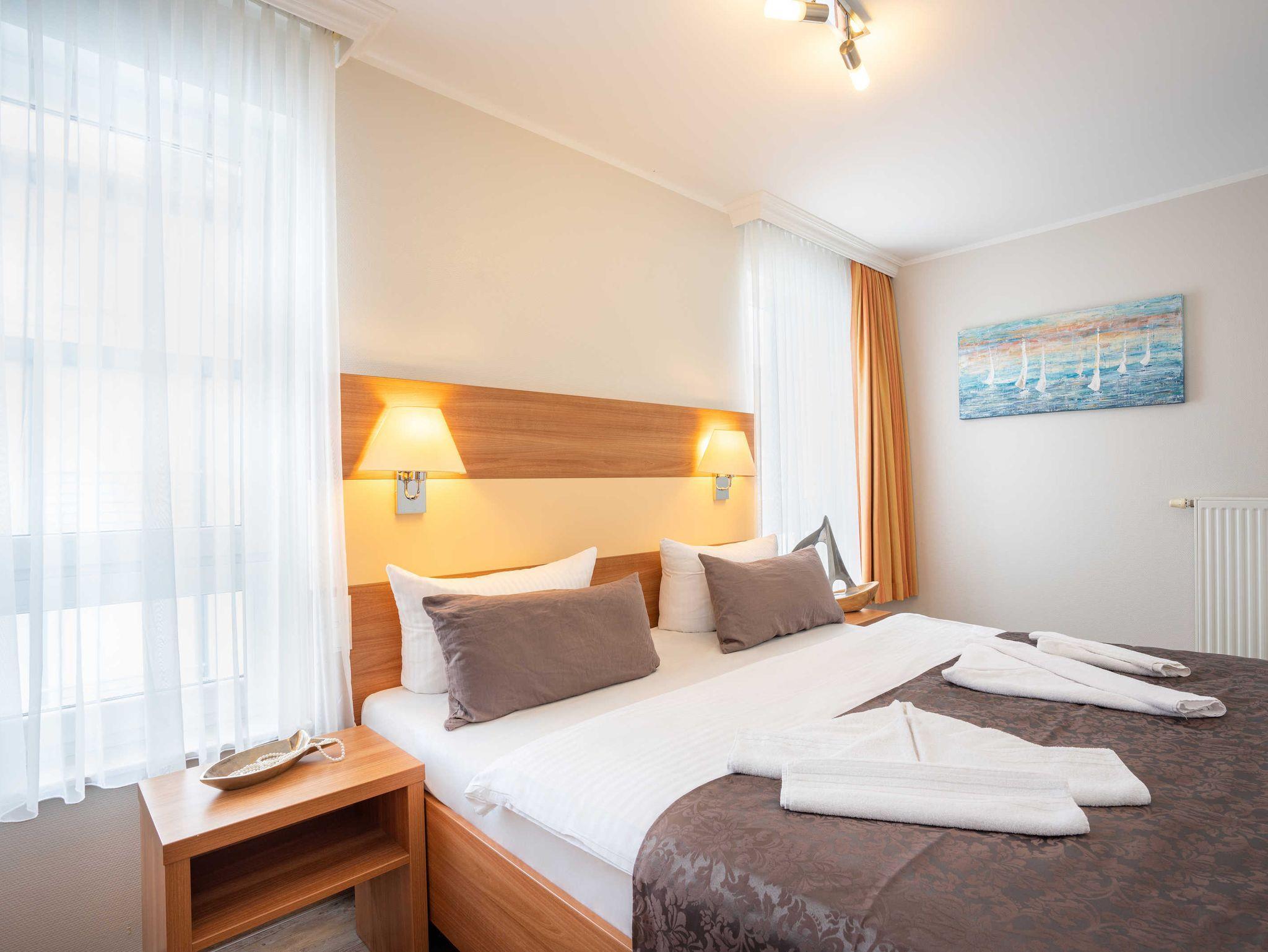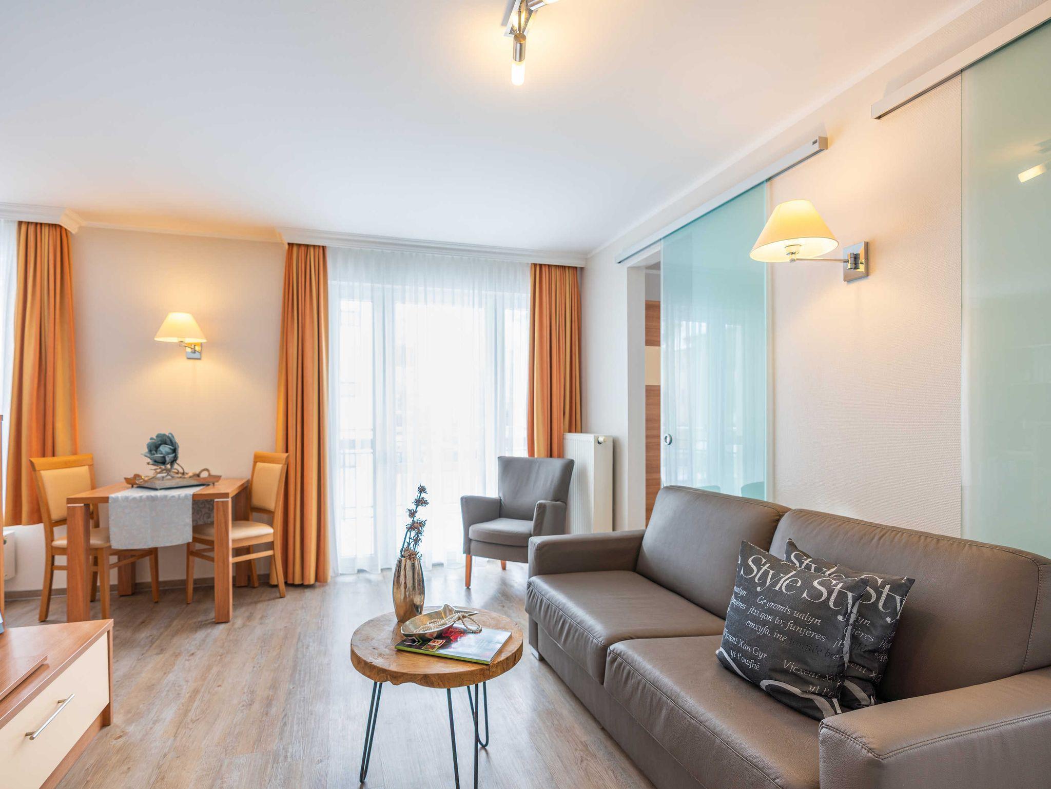 Stilvolle moderne Ferienwohnung mit ca. 39 qm. Aufbettung gegen Gebühr im Wohnzimmer über eine Schlafcouch bzw. Kinderbett im Schlafzimmer möglich ! Waschmaschine und Trockner stehen Ihnen im Haus als Münzautomaten zur Verfügung! In dieser Wohnung sind Haustiere buchbar.