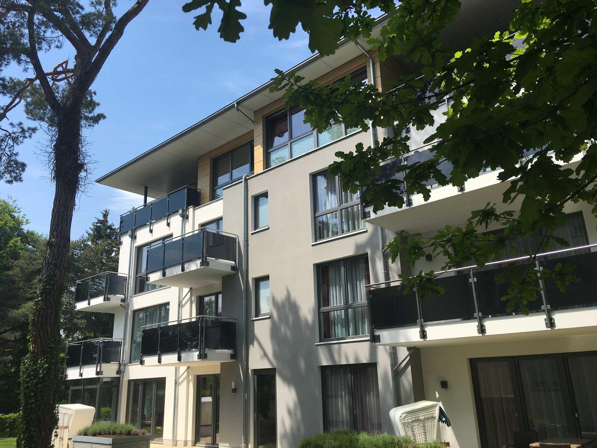 Das Appartementhaus mit 9 exklusiven 2-3 Zimmerwohnungen wurde im September 2019 eröffnet. Hier finden Sie jeglichen Komfort zu zweit oder mit der Familie. Alle 3 Zimmerwohnungen verfügen über zwei Vollbäder und zwei Schlafzimmer mit Doppelbetten. Zusätzlich haben wir auch eine behindertengerechte Wohnung mit zwei Schlafzimmern und zwei Bädern. Einige Wohnungen verfügen über eine eigene Sauna. Alle Wohnungen haben mindestens ein großen Balkon. Das Haus befindet sich im Promenadenbereich der 3 Kaiserbäder. Der Strandaufgang zum feinsandigen Ostseestrand befindet sich unmittelbar vor dem Grundstück. Ihren Strandkorb mieten Sie am Strandaufgang vor dem Haus.