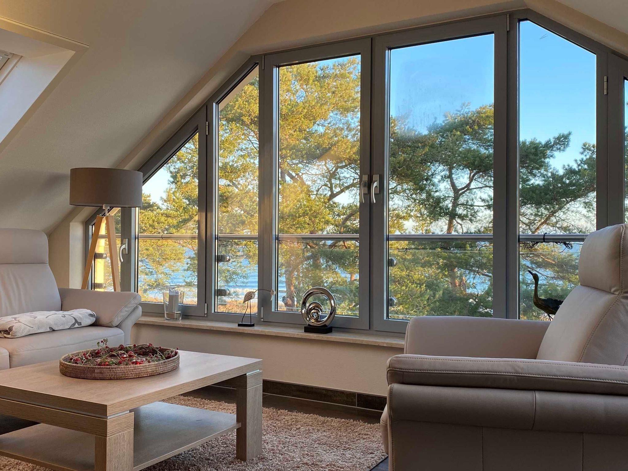 Moderne stilvolle 3 Zimmerferienwohnung für 2 - 4 Personen maximal. Wohnzimmer mit TV, CD, Eßplatz und integrierter Vollküche mit Geschirrspüler. Wohnung mit Duschbad Die Wohnung besitzt ein Balkon und großes Panoramafenster mit Blick zum Meer.