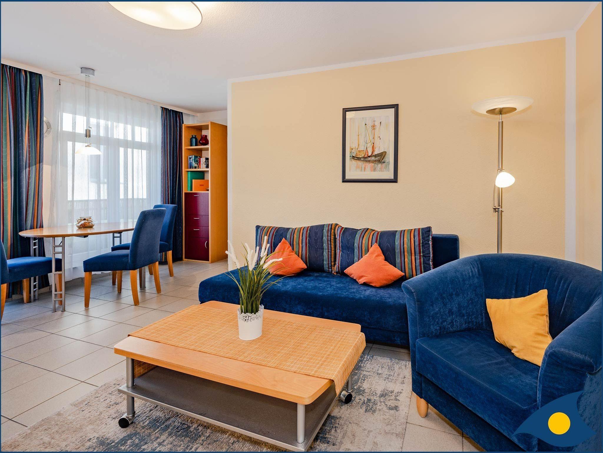 Diese liebevoll und hochwertig gestaltete 2-Raum-Ferienwohnung Pinta vermittelt Wohlfühl-Atmosphäre. Sie verfügt über ein Schlafzimmer mit TV, einem Wohnzimmer mit großem LED-TV, einer Doppelbettcouch, einer Sitzecke, einem separaten Essplatz, einer modernen Pantryküche mit Mikrowelle und Minibackofen und ein helles Dusch-Bad. Auf dem großen West-Balkon können Sie mit seitlichem Meerblick warme Sommertage genießen. Sie erreichen Ihr Domizil bequem mit dem Fahrstuhl. Waschmaschine, Trockner (geringe Gebühr) und Unterstellmöglichkeit für Fahrräder befinden sich im Haus (auf eigene Gefahr). Haustiere sind willkommen. Im Ort gibt es mehrere Fahrradverleiher.