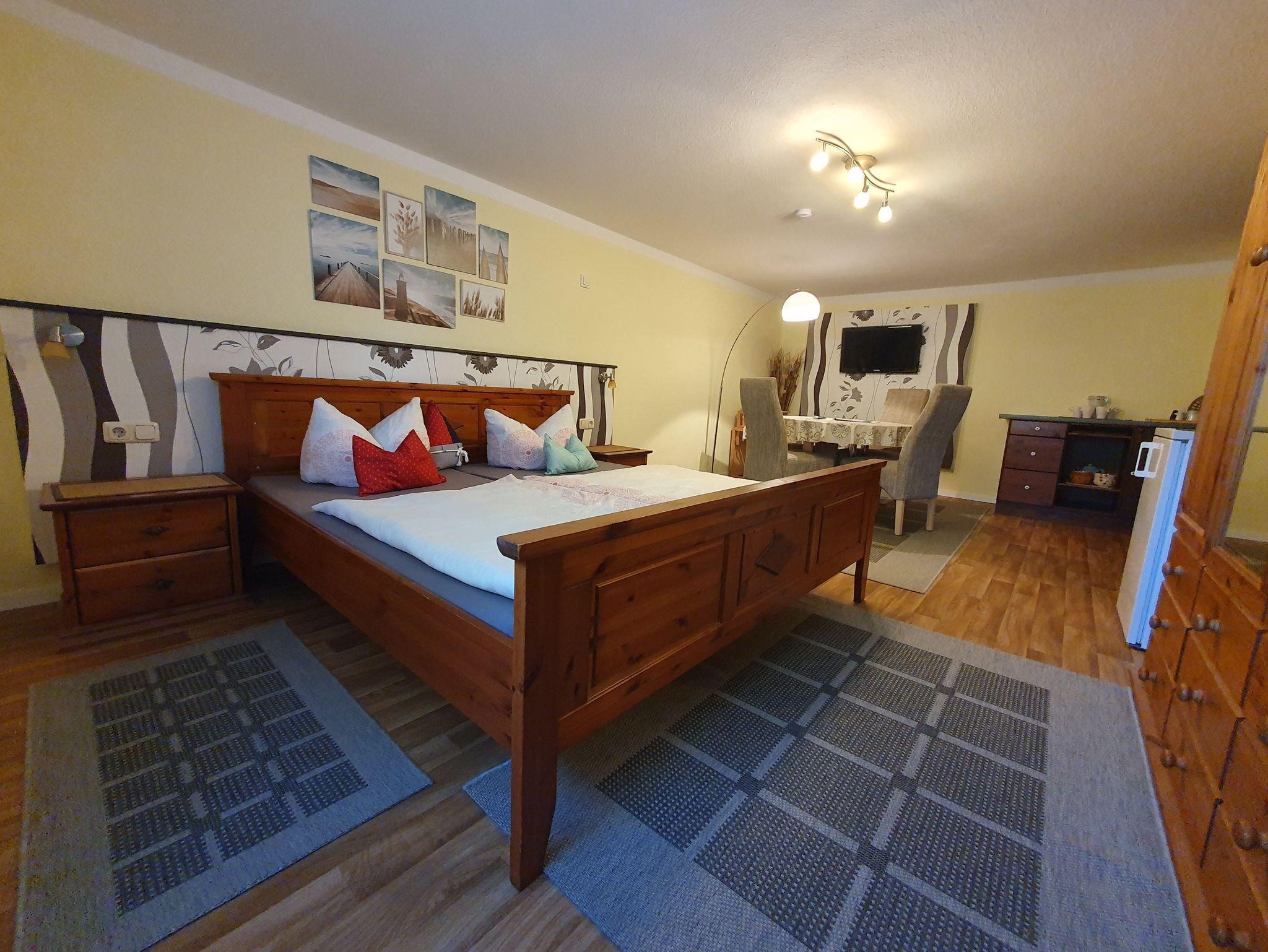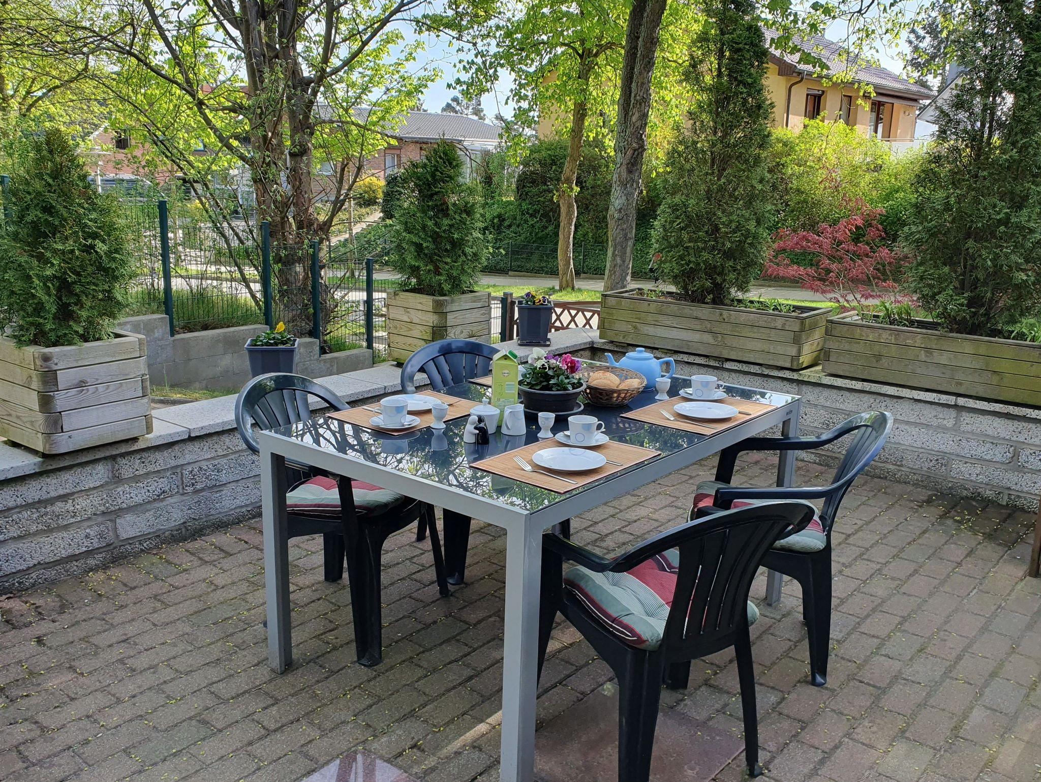 Die Ferienwohnung verfügt über einen separaten Eingang und befindet sich im Souterrain. Vor dem Eingang steht Ihnen eine möblierte Terrasse zur Verfügung, auf der auch gegrillt werden kann. Bitte bringen Sie dafür den Grill mit. Das Rauchen ist im Haus nicht erlaubt und das Objekt ist videoüberwacht. Ein Babybett und Kinderhochstuhl können wir Ihnen kostenlos zur Verfügung stellen. Die Bettwäsche ist bereits im Gesamtpreis enthalten. Handtücher sind bitte selbst mitzubringen. Diese werden nicht zur Verfügung gestellt. Ein kostenfreier Zugang zu einem WLAN-Hot Spot kann genutzt werden. Filme streamen ist darüber jedoch nicht möglich. Ein PKW-Stellplatz befindet sich vor dem Grundstück an der Straße. Die Fahrräder können im Carport untergestellt werden und nach Absprache auch eingeschlossen werden. Das Laden von E-Bikes ist nicht gestattet. Am Abreisetag erfolgt durch den Gast eine teilweise Reinigung der Wohnung (Müll rausbringen, genutztes Geschirr/Besteck abwaschen und wegräumen, sowie die Böden staubsaugen und wischen).