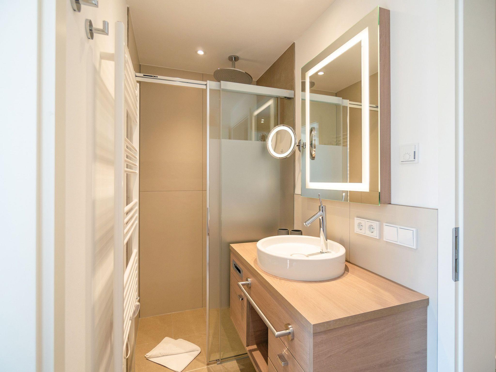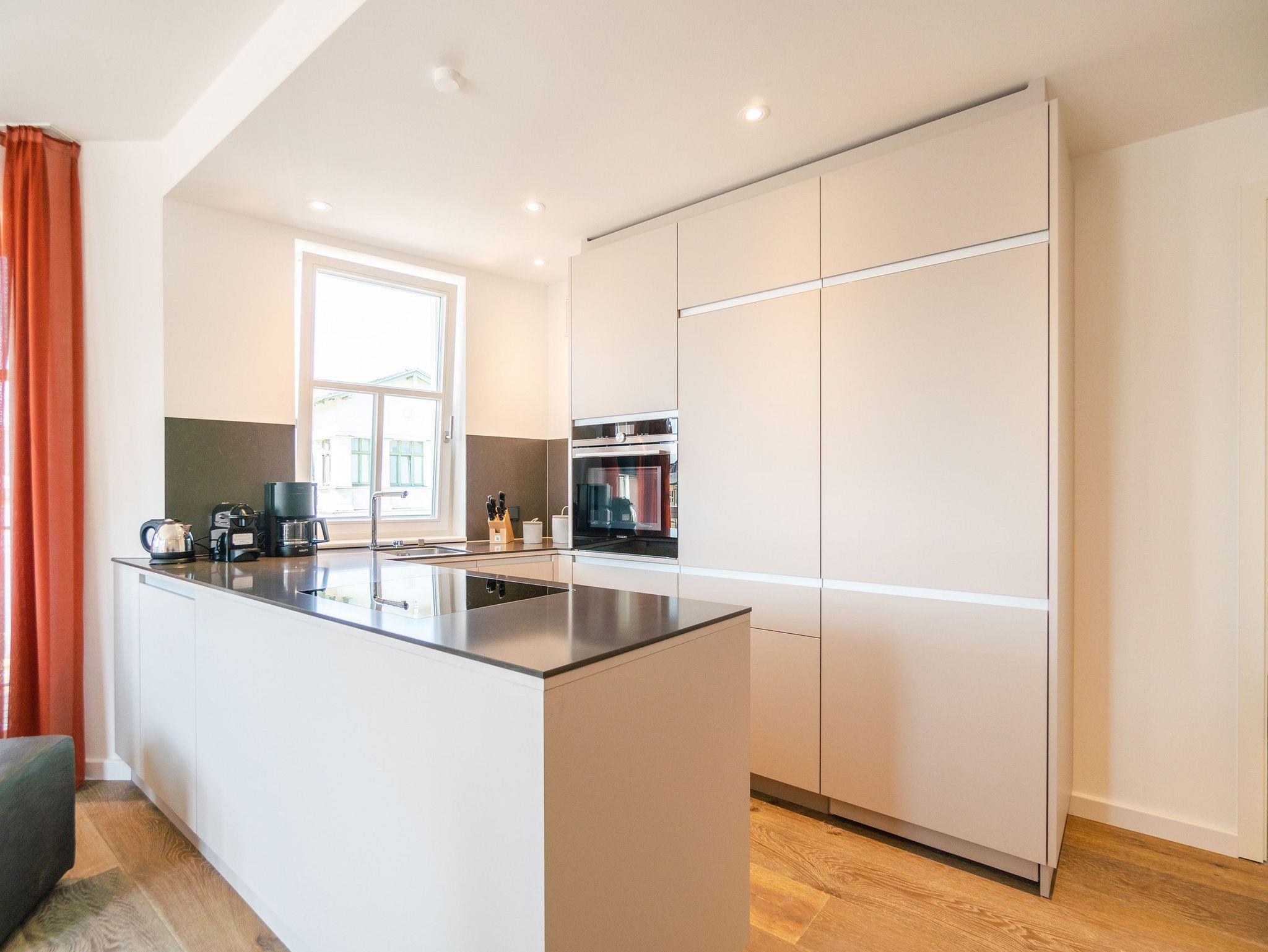 Im 3. Obergeschoss des Beachhouses werden Meerblick-Urlaubsträume wahr. Auf 69 Quadratmetern lichten Wohndesigns können bis zu vier Personen und ein Kleinkind bis drei Jahre (im Kinderreisebett) ihren Ostseeurlaubsträumen mit viel Komfort frönen. Das Meer, das sich hier schon morgens auf einem der zwei Balkone mit glitzerndem Sonnenaufgang in den Blick legt, ist nur ein paar Meter entfernt. Meeresrauschen ist hier also garantiert. Einmal tief durchatmen, den Kopf frei bekommen, abschalten und wohlfühlen in diesem Appartement gelingt das schon beim Eintreten in das lichtdurchflutete Wohnzimmer. Stilvoll und harmonisch eingerichtet fällt das Entspannen auf der bequemen Couch oder dem nordischen Design-Schaukelstuhl aus Leder nicht schwer. Ein großer Flat-TV und eine Hi-Fi-Anlage mit bluetooth sorgen für Unterhaltung. Blickfang an kühlen Tagen ist auf alle Fälle der Gas-Kamin aus Glas. Wenn sie ihn während des Essens am schönen Essplatz anmachen, zaubert er per Knopfdruck eine romantische Dinner-Atmosphäre. Zum Wohn-Essbereich hin geöffnet ist die mit hochwertigen Geräten und edlem Geschirr vollausgestattete Küche. Die nach drei Seiten frei zugängliche Kochinsel ist ein ideale Raumteiler. So können alle beim Kochen, Braten und Schmausen zusammen sein. In der Küche steht ebenfalls ein Wasch-Trockner zu Ihrer Verfügung. Vom Wohnzimmer aus haben Sie Zugang zu gleich zwei Balkonen. Ein kleinerer (8 Quadratmeter groß) hat freien Blick auf die Ostsee. Vom zweiten Balkon (9 Quadratmeter groß) aus können Sie den ganz Tag die Sonne hoch über den Dächern der Bansiner Bädervillen genießen. Denn er ist zum Süd-Westen hin ausgerichtet. Von beiden Schlafzimmern aus haben Sie ebenfalls Zugang zu jeweils einem der beiden Balkone. Beide Zimmer haben auch einen Flat-TV. Genießen Sie hier die Ruhe und gönnen Sie sich eine erholsame Nacht in den komfortablen Boxspringdoppelbetten (1,60 m x 2,00 m und 1,80 m x 2,00 m). Die Wohnung verfügt zudem über zwei Bäder mit Regendusche, Waschtisch und WC. Im Masterbad erwartet Sie sogar noch eine Finnische Sauna. Kommen Sie bei muscheligen Temperaturen ordentlich ins Schwitzen. Denn die kleine Wellnessoase steht Ihnen kostenfrei zur Verfügung. Ebenso wie das WLAN. Für Ihren Rundum-Komfort haben wir bei der Anreise die Betten bereits bezogen und Handtücher bereit gelegt. In der hochmodernen Tiefgarage ist der Stellplatz Nr. 23 für Ihre Wohnung reserviert.
