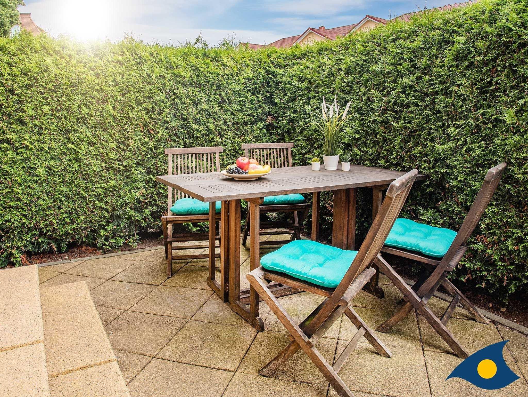 Die Terrassenmöbel sowie die Sonnenliegen lassen Sie Ihren Urlaubstag bereits gerne dort beginnen.
