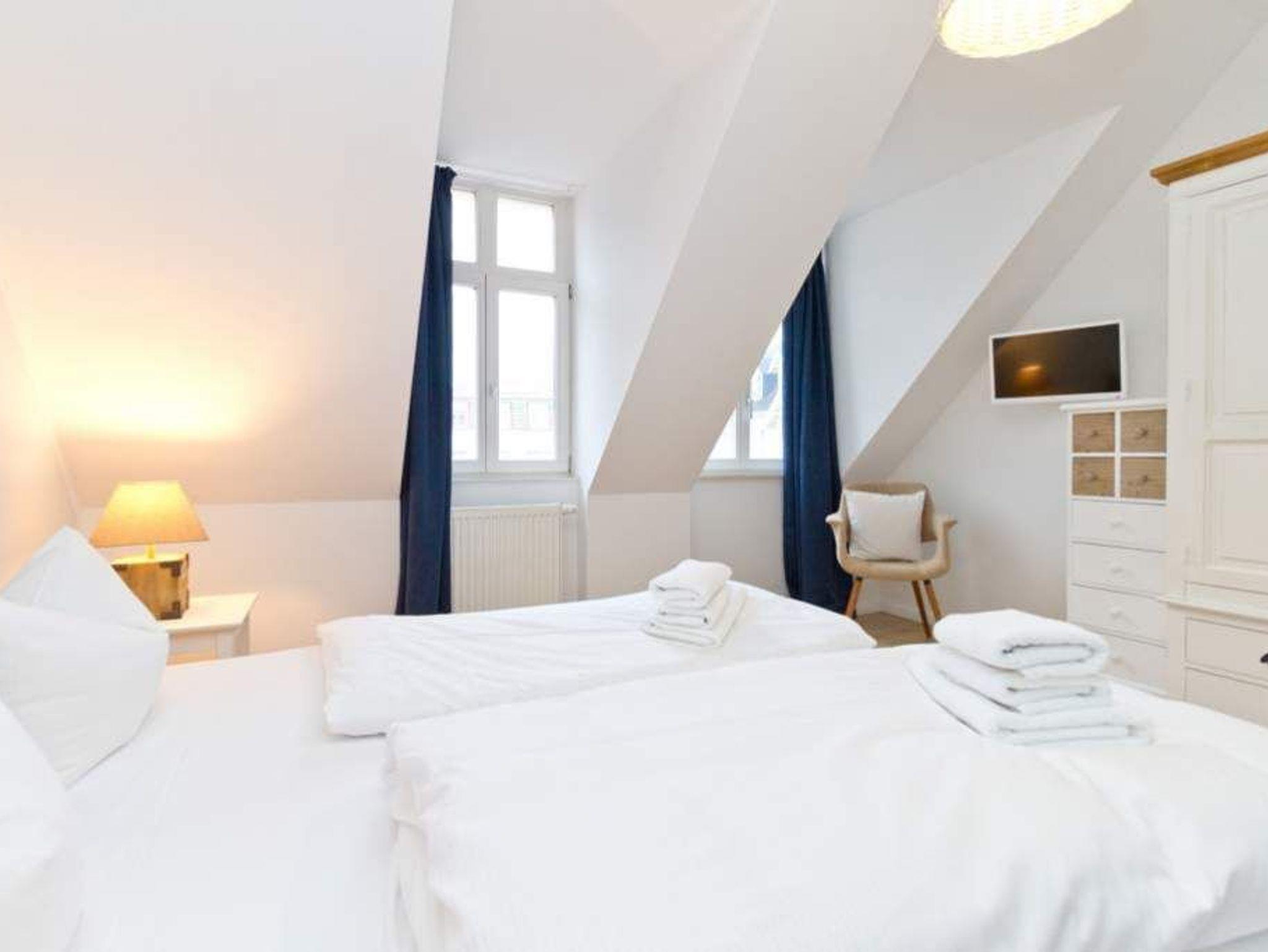 Verbringen Sie Ihre Urlaubstage in der Villa Frisia 30 ( für max. 4 Personen [&] 1 Kleinkind bis 2 Jahre), hier finden Sie Ruhe und Entspannung. 2016 frisch renoviert - modern und sehr geschmackvoll eingerichtet, finden Sie hier ein Wohnzimmer, eine vollständig ausgestattete Küchenzeile (Ceranfeld, Geschirrspüler, Mikrowelle), zwei Schlafzimmer (1x Holz-Doppelbett [&] 1x Boxspringdoppelbett 1,80m x 2,00m) und ein Duschbad. Auf dem großzügigen Balkon können Sie in der Morgensonne frühstücken, außerdem gibt es einen zweiten kleinen Balkon. Auf Wunsch stellen wir für unsere kleinen Gäste ein Kinderreisebett (ohne zusätzliche Matratze [&] Bettzeug) und einen Kinderhochstuhl ( gegen einen Aufpreis) zur Verfügung. Bei Bedarf buchen Sie bitte das Wäschepaket ( Bettwäsche [&] Handtücher) im Voraus dazu. Abschalten. Wohlfühlen. Endlich Urlaub machen. Die Villa Frisia bietet Ihnen ein strandnahes Feriendomizil in stilvoller, exklusiver Atmosphäre. Es erwarten Sie moderne, ansprechend möblierte und sehr komfortabel ausgestattete Appartements mit vielen Extras. Zu jeder Wohnung gehört ein Pkw-Stellplatz. Ein Fahrradkeller befindet sich direkt am Objekt. Waschmaschine [&] Trockner im Haus sind gegen Gebühr nutzbar. Das WLAN-Netz im Haus steht kostenfrei zur Verfügung.