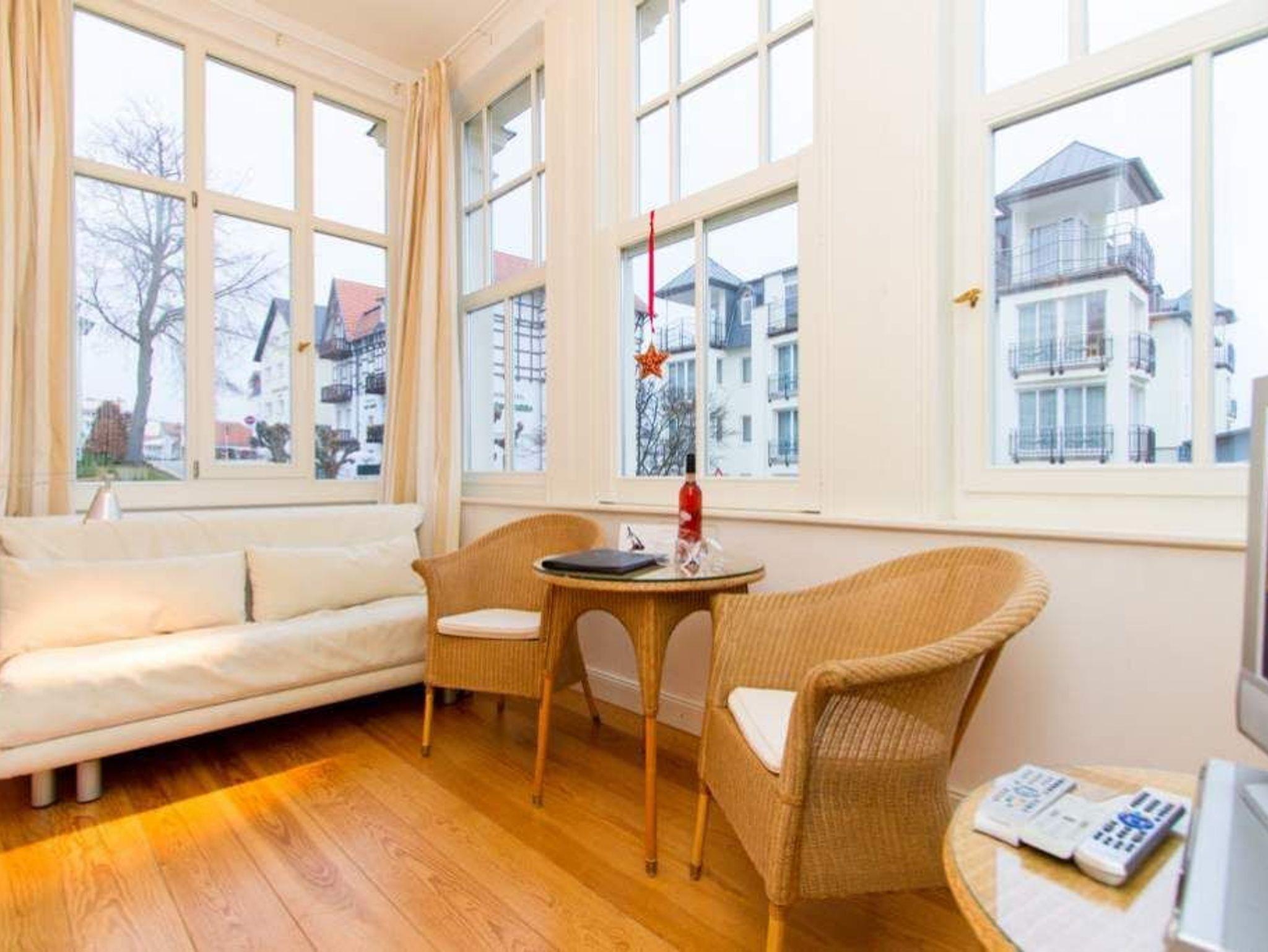 Die Ferienwohnung 2 in der Villa Artemis empfängt Sie im Hochparterre des Hauses und ist zur Seeseite gelegen. Auf 45 qm bietet Ihnen dieses 2-Raum Appartement eine separate Küche mit Essbereich, einen Wohnbereich in der Licht durchfluteten, verglasten Veranda und ein Schlafzimmer mit Doppelbett. Klare Linien, hochwertige Materialien, von der Bulthaup Küche über helle Pitch Pine Böden bis hin zum Flachbild Fernseher, Sie werden begeistert sein. Ein DVD-Player kann Ihnen auf Anfrage zur Verfügung gestellt werden.