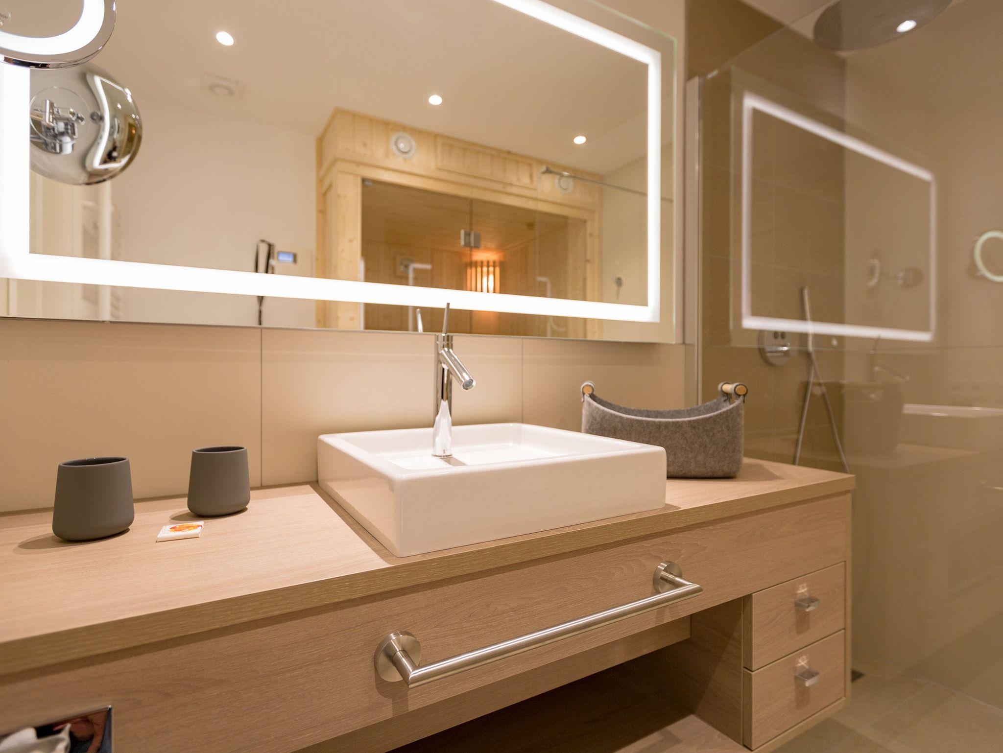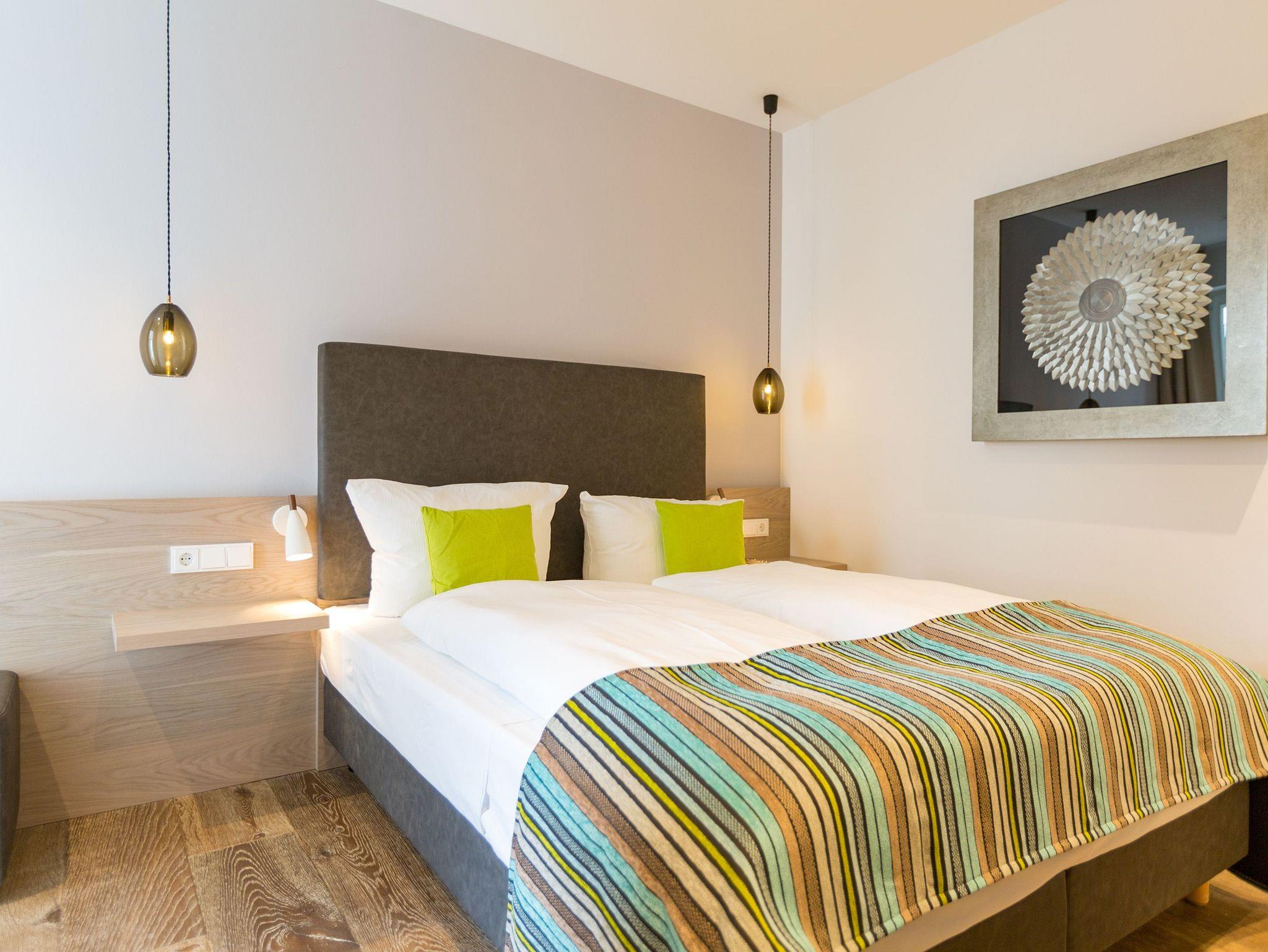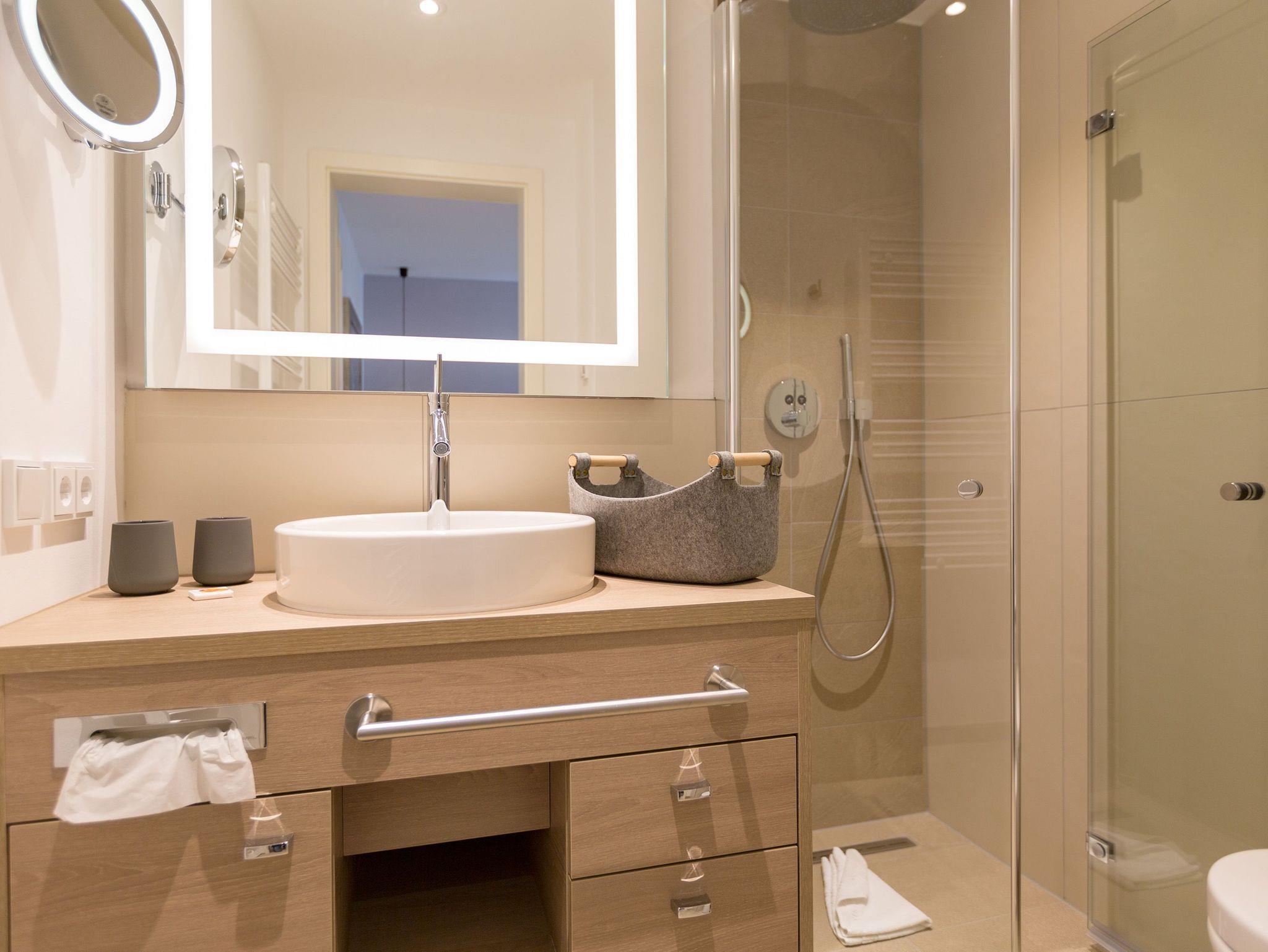 Entspannung ist ein Ort ? In diesem großzügigen und wunderschönen Drei-Zimmer-Appartement im 2. Obergeschoss erwartet Sie und Ihre Familie oder Freunde eine wunderbar entspannende Ostsee-Auszeit in exklusivem Rahmen. Genießen Sie Ihre Zeit mit bis zu vier Personen. Ein Kleinkind (bis drei Jahre im Kinderreisebett) hat auch noch Platz in den 66 Quadratmetern dieses Urlaubsparadieses. Ein helles und elegantes Wohn-Esszimmer wird zum Mittelpunkt. Frische Farben und Naturmaterialien verleihen Ihrem Domizil eine wohnliche Wohlfühlatmosphäre. Die gemütliche Sofa-Sitzgruppe vor dem Gas-Kamin mit Blick auf den großen Flat-TV ist ideal zum Entspannen und eignet sich bestens zum Zusammensitzen. Genauso wie der schöne große Esstisch, an dem alle Platz haben für gemeinsame Essen oder Plauderstunden. Das Essen zubereiten, können Sie in der zum Wohnzimmer hin offenen und voll ausgestatteten Küche. Hochwertige Markengeräte und edles Geschirr machen das Kochen oder Zubereiten feiner Speisen zu einem vergnüglichen Genuss. Ob Herd, Backofen, Kühlschrank oder Kaffeemaschine ? hier fehlt es an nichts. Vom Wohnzimmer aus, aber auch von beiden Schlafzimmern aus, haben Sie einen Zugang zum Süd-Ost-Balkon (9 Quadratmeter). Bei schönem Wetter können Sie von hier aus die Aussicht auf die Ostsee genießen. Die beiden Schlafzimmer verströmen viel Gemütlichkeit. Jeweils ein bequemes Boxspringdoppelbett (1,60 m x 2,00 m), ein großer Schrank und ein Flat-TV gehören zur Ausstattung. Zu einem echten Wellness-Paradies wird die Wohnung durch die eigene Finnische Sauna im Masterbad. Kommen Sie ordentlich ins Schwitzen, wenn Sie Ihnen einheizt. Die beiden Bäder verfügen ansonsten jeweils über eine Regendusche, einen Waschtisch und ein WC. Für eine rundum schöne Auszeit liegen Handtücher für Sie bereit und die Betten sind auch schon bezogen. In einem kleinen Hauswirtschaftsraum steht ein Wasch-Trockner zu Ihrer Verfügung. Das WLAN ist kostenfrei. In der modernen Tiefgarage ist für Sie der Stellplatz Nr. 12 im Doppelparker unten (max. Höhe 1,85 m, max. Länge 5,10 m, max. Breite 2,50 m, max. Last 2.600 kg) reserviert.