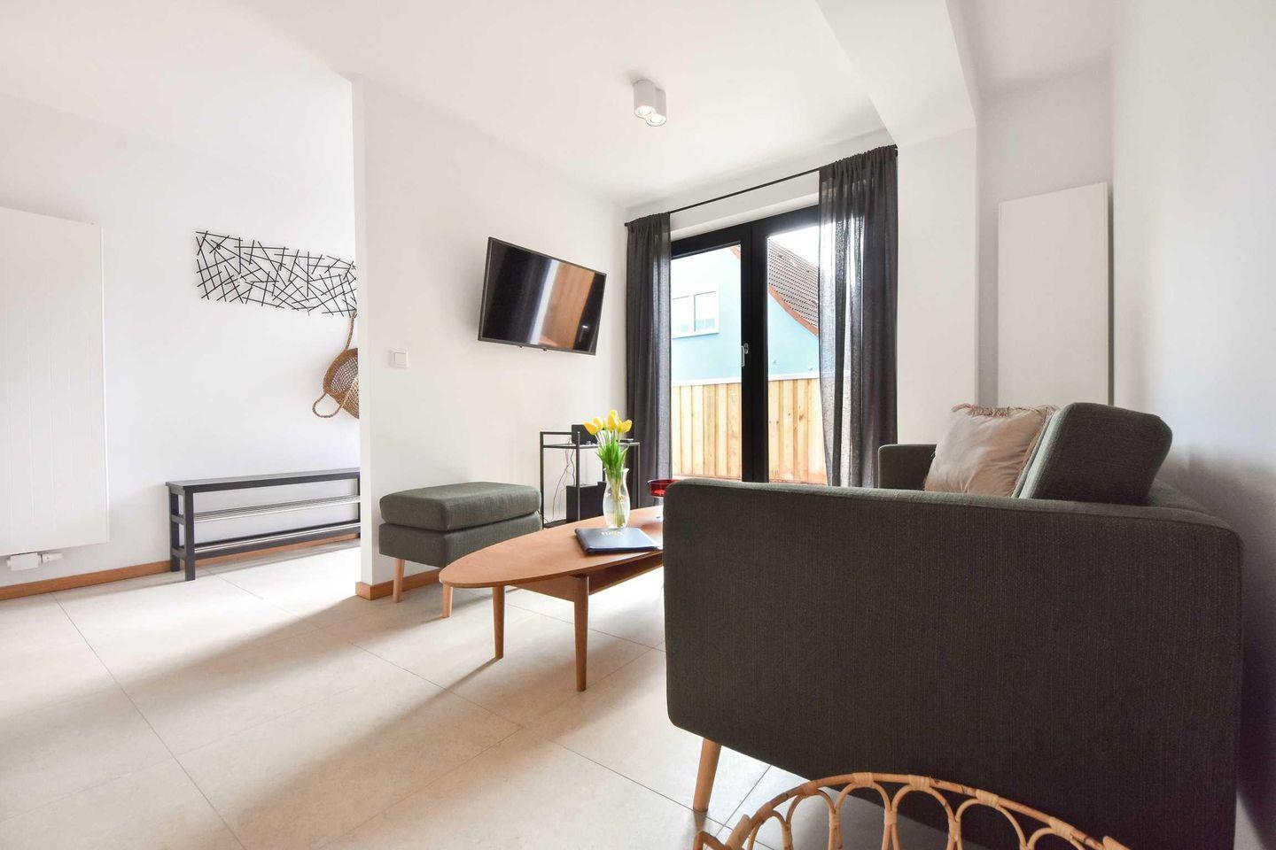 Wohnung "West" befindet sich im Erdgeschoss des Hauses "Sonnenlauf". Der Eingang ist separat und erfolgt seitlich über die eigene Terrasse. Auf 54 Quadratmetern finden zwei Personen und ein Kleinkind im Kinderreisebett ein harmonisch eingerichtetes Urlaubsdomizil vor. Bodentiefe Fenster, ein offener Wohnraum, liebevolle und hochwertige Einrichtung sowie die zentrale Lage machen dieses Objekt zu einem echten Geheimtipp.