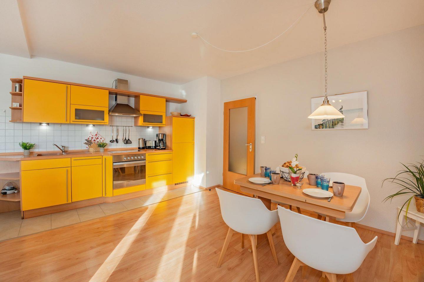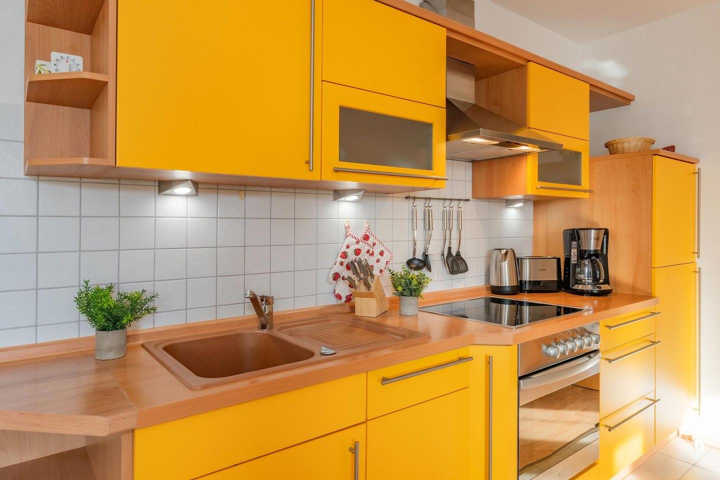 Küche: Die voll ausgestattete Küche lässt keine Wünsche offen. Ein Ceranfeld, Backofen, Spülmaschine und alle weiteren notwendigen Geräte stehen Ihnen zur Verfügung, um Ihre Lieblingsgerichte zu zaubern. Die offene Gestaltung zur Wohnzone schafft eine einladende Atmosphäre.