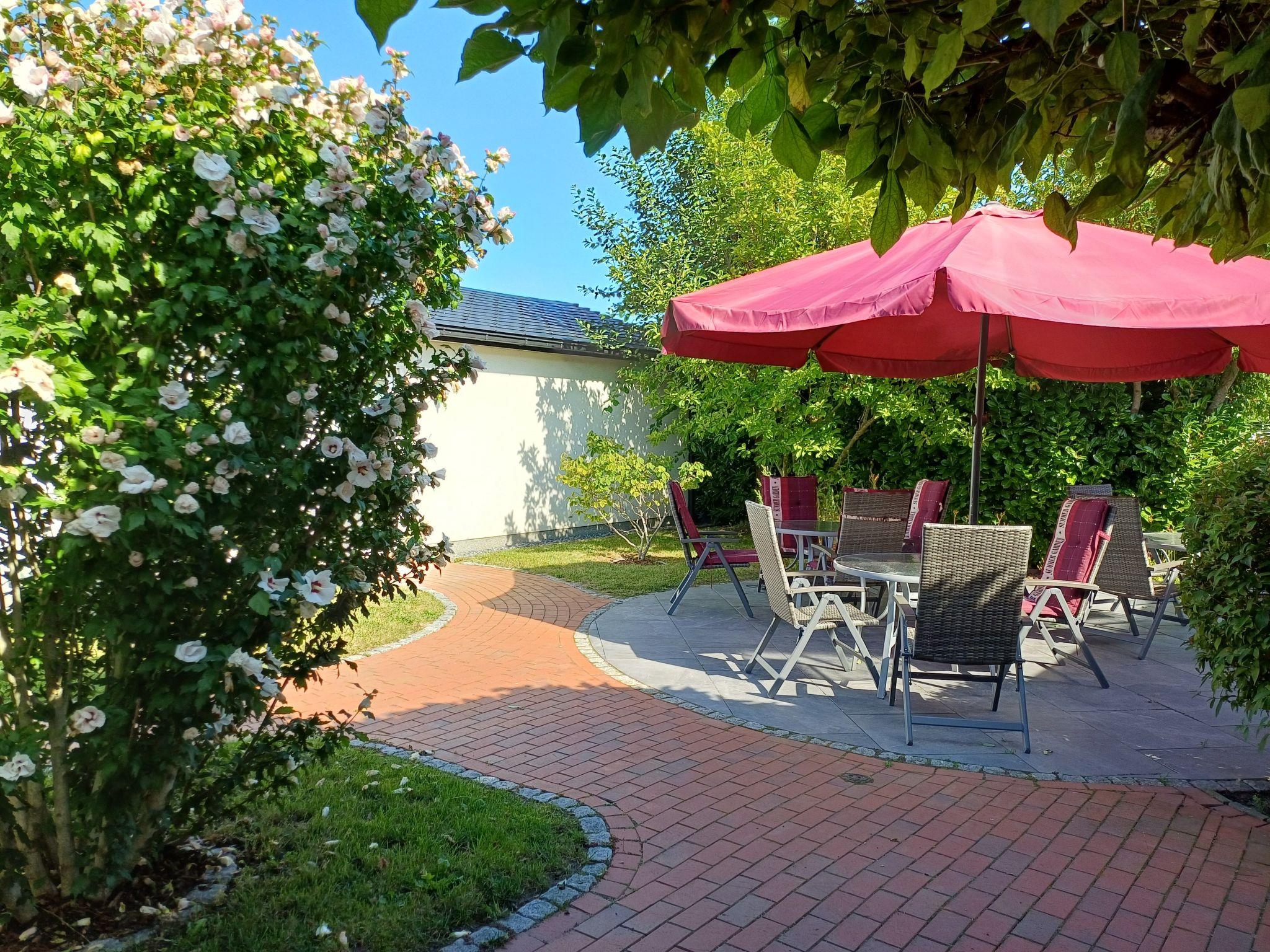 Outside, a furnished terrace with comfortable garden furniture and a large parasol invites you to start the day with breakfast in the morning sun or to wind down in the evening. The terrace offers the perfect setting for relaxing moments in the open air.
