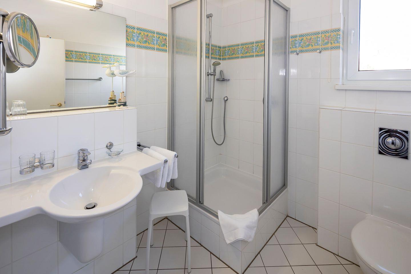 Das Apartment mit Duschbad besteht aus einem Schlafzimmer mit Doppelbett, einem Wohnbereich mit Doppelschlafcouch, Flatscreen-TV mit TV-HiFi-Anlage sowie einer westlich gelegenen Terrasse mit Blick auf den Schloonsee und einer weiteren Terrasse in Südlage .