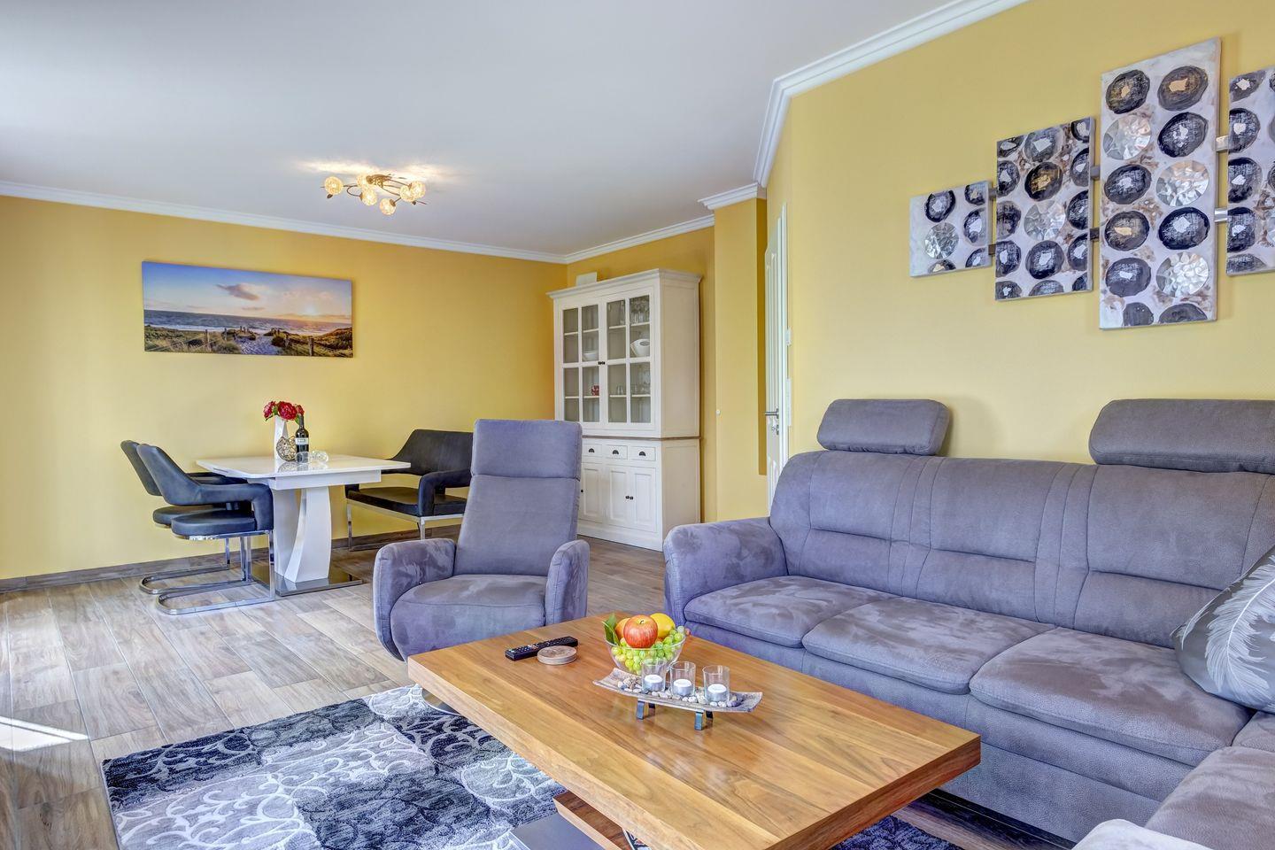 Dieses Domizil ist perfekt für 4 Personen geeignet und bietet ideale Bedingungen für Familien, Urlaub mit Freunden oder romantische Auszeiten zu zweit. Der lichtdurchflutete und großzügige Wohnbereich mit bequemer Sitzgruppe sowie einem komfortablen Essbereich, machen es zu einem ganz besonderen Urlaubsdomizil. Vom Wohnbereich hat man Zugang zu der sonnigen, überdachten Terrasse und einen Garten zur Eigennutzung. Hier können Sie morgens das Frühstück an frischer Luft oder abends den Tagesausklang bei einem Glas Wein mit wunderschönem Gartenblick genießen. Hinter dem Haus befindet sich ein Weg, der direkt zur Schloonsee über die Wiesen führt - ein Paradies für Angler.
