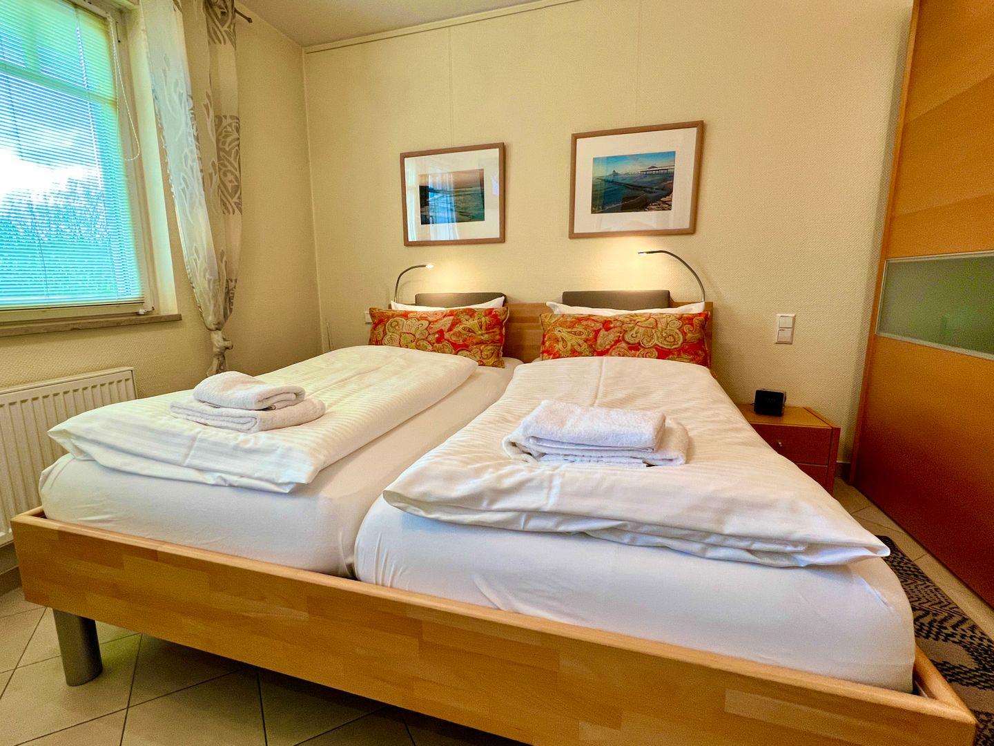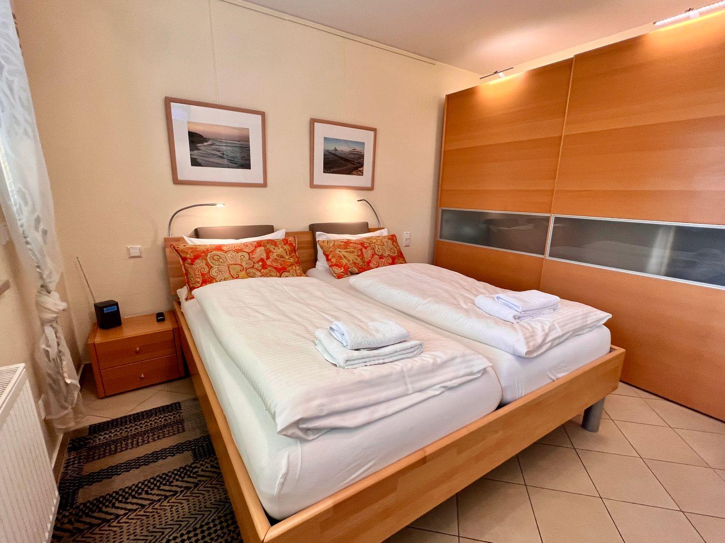 Ideal für 2 Gäste, ist die Wohnung exklusiv und geschmackvoll eingerichtet. Sie verfügt über einen kombinierten Wohn- und Essbereich mit moderner Granit-Küchenecke, ein Schlafzimmer mit einem komfortablen Doppelbett (Liegehöhe 60 cm), elektrisch verstellbaren Lattenrost und TV sowie ein hochwertiges Duschbad mit integrierter Waschmaschine.