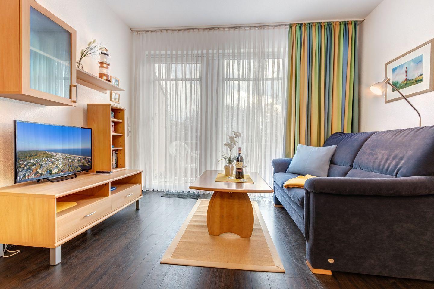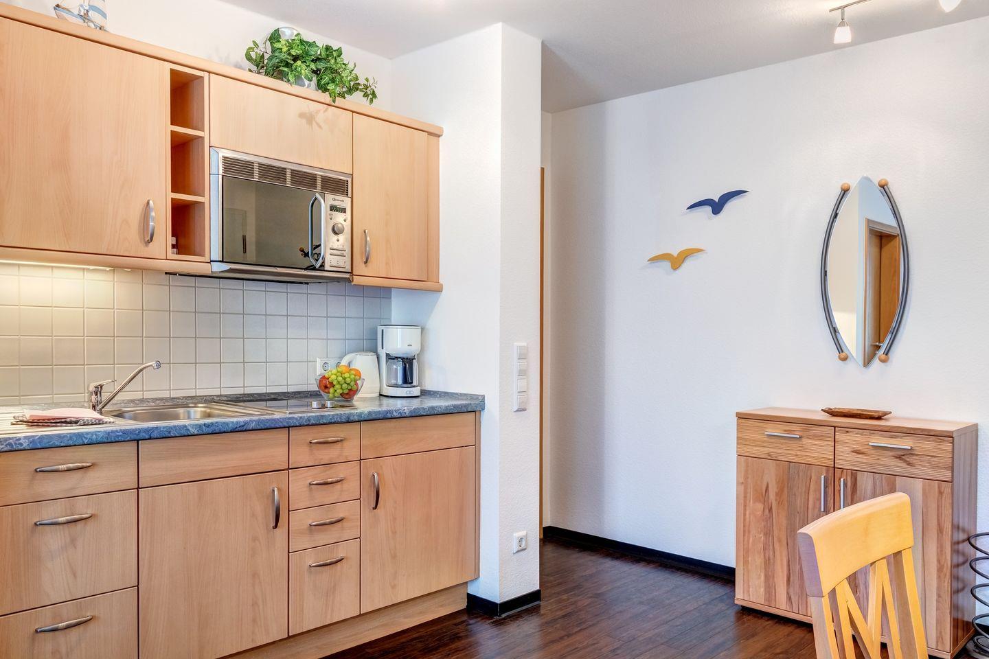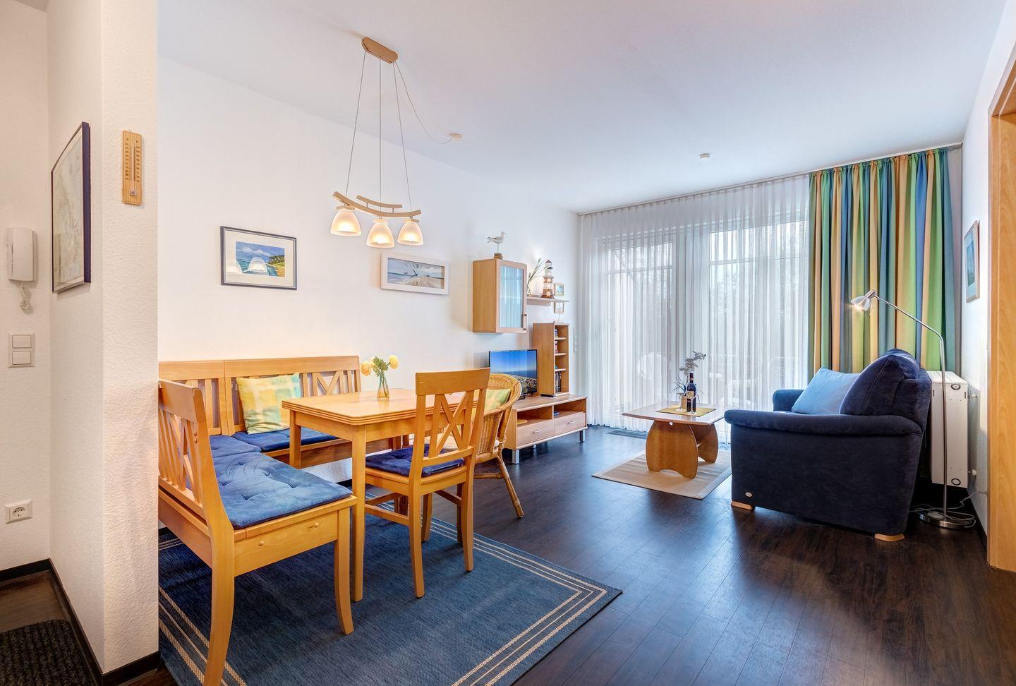 Der helle Wohn- und Essbereich bietet viel Raum für gemütliche Stunden, während die komplett ausgestattete Küche keine Wünsche offenlässt. Das Schlafzimmer sorgt mit seinem komfortablen Bett für erholsamen Schlaf, und das moderne Duschbad bietet zusätzlichen Komfort. Mit ihrer perfekten Lage und dem einladenden Ambiente ist diese Wohnung der ideale Rückzugsort für einen unvergesslichen Urlaub.