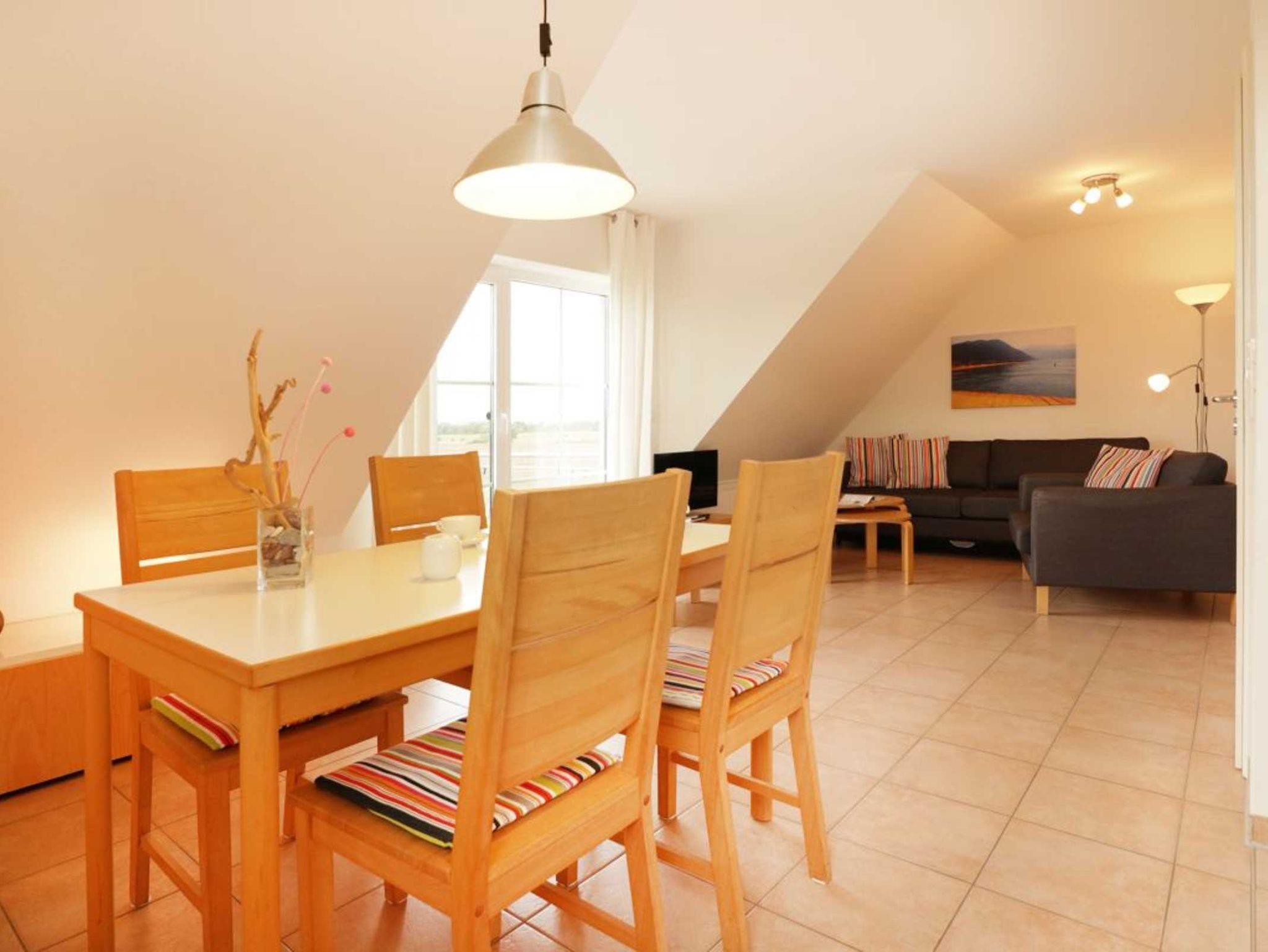 Das 3 -Zimmer - Ferienappartement erstreckt sich über zwei Ebenen. Die komfortable Ausstattung für vier Personen empfängt Sie mit einem hellen Wohnbereich mit Essecke und offener Küchenzeile (Kühlschrank, Mikrowelle, Geschirrspüler, Toaster, Kaffeemaschine uvm.).