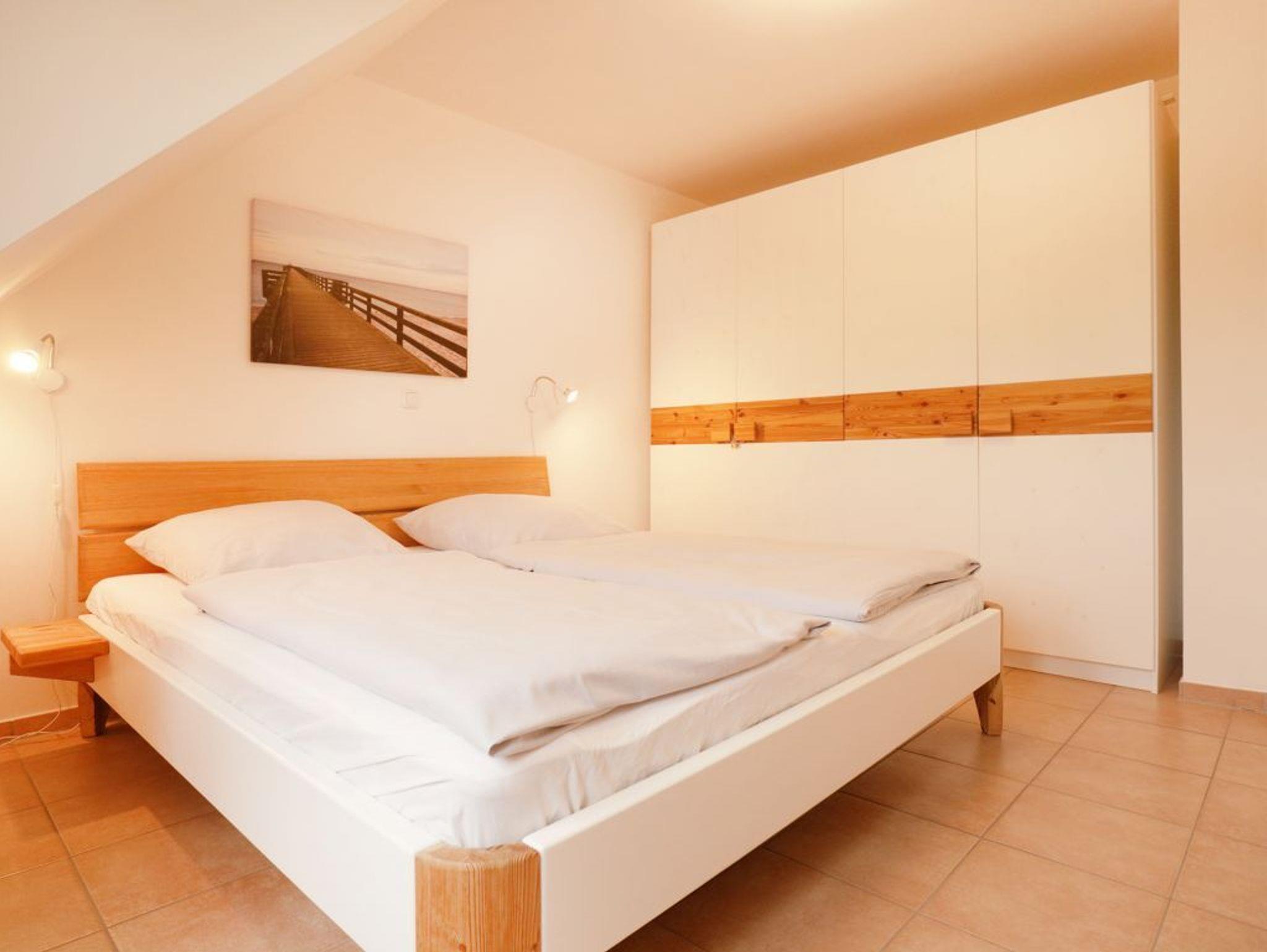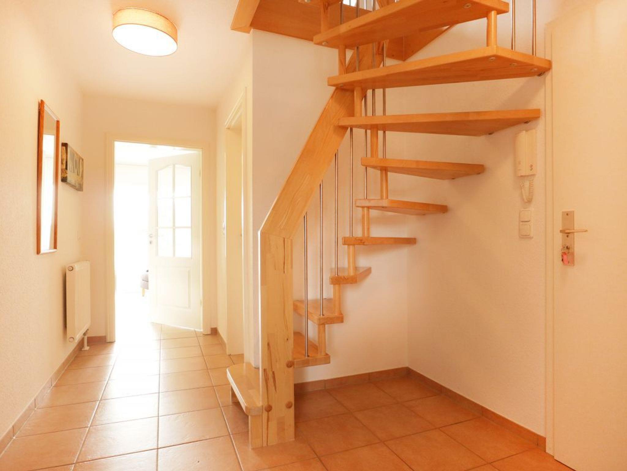 Wohnebene. Über eine Wendeltreppe erreichen Sie das zweite Schlafzimmer in welchem sich zwei Einzelbetten sowie zwei gemütliche Sitzsäcke befinden. Im Duschbad der Wohnung befindet sich auch eine Waschmaschine. Vom Balkon haben Sie einen