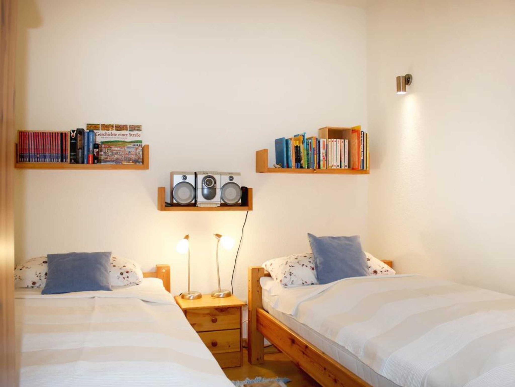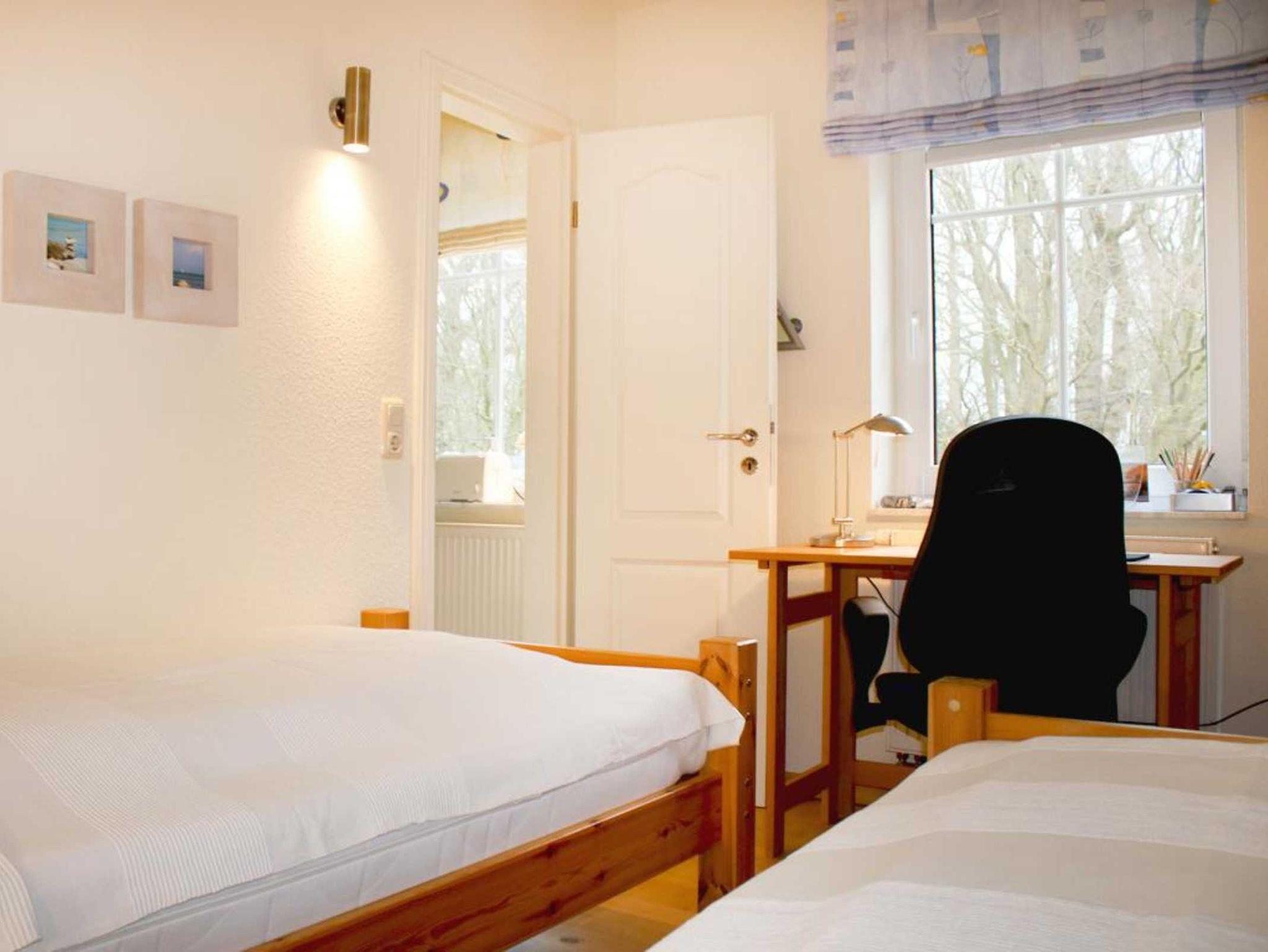 In dieser 3-Zimmer Ferienwohnung im 1. Obergeschoss mit Balkon in westlicher Lage und zwei separaten Schlafzimmern können bis zu 5 Personen und 1 Hund auf einer Wohnfläche von 55 qm einen Wohlfühl- Urlaub in idyllischer Umgebung verbringen. Hell und behaglich empfängt der Wohn-/Essbereich und bietet ein bequemes Schlafsofa als Schlafgelegenheit für eine 4. und 5 Person. Der große, ausziehbare Esstisch ist der Mittelpunkt für gemeinsame Mahlzeiten in geselliger Runde. Selbstverständlich sind auch ein Fernsehgerät und eine Musikanlage vorhanden. Auch Wlan können Sie kostenfrei nutzen. Im Wohnbereich befindet sich die integrierte, offene Küche in kompletter Ausstattung wie Geschirrspüler, Ceranfeld Herd mit Backofen auf Augenhöhe, Kühlschrank, Kaffeemaschine, Toaster, Mikrowelle usw. Eines der Schlafzimmer ist mit einem Doppelbett und kleinem Kleiderschrank ausgestattet. Das weitere Schlafzimmer mit zwei Einzelbetten und Kleiderschrank. Das hell geflieste und geräumige Badezimmer bietet eine Badewanne mit Duschvorrichtung und eine Waschmaschine zur kostenfreien Nutzung. Das gesamte Ferienappartement ist mit Laminat Fußboden ausgelegt. Für die kleinen Gäste stehen ein Kinderreisebett sowie ein Hochstuhl bereit. Ihren PKW parken Sie kostenfrei vor dem Nachbarhaus. Für mitgebrachte Fahrräder befindet sich ein Schleppdach vor dem Ferienhaus.