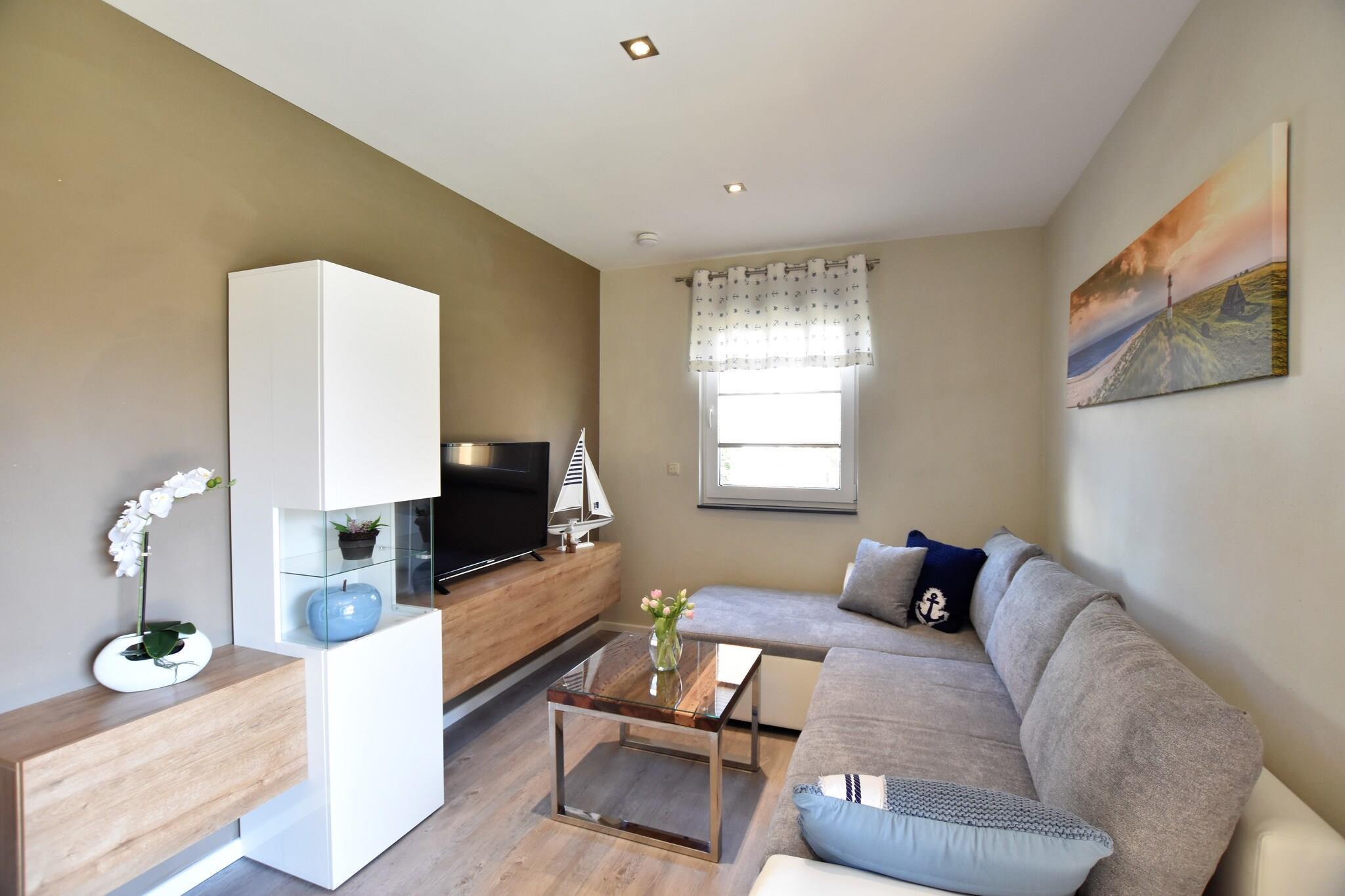 Frittstående og barrierefritt feriehus i et nybygd hus bygget i 2019, kun få minutters kjøring fra Østersjøen. Det er et moderne og koselig 3-roms feriehus med peis, åpent og fullt utstyrt kjøkken og terrasse med strandstol og en stor hage. Soverommene har en dobbeltseng (1,80 x 2,00m) og en køyeseng (0,90 x 2,00m). Badet har en dusjkabinett og en brakett på toalettet. På grunn av de ekstra brede dørene er leiligheten perfekt for funksjonshemmede. For gjester er det et vaskerom med vaskemaskin tilgjengelig. I hagen finner du et låsbart sykkelrom. For de yngre gjestene er det en barneseng og høy stol klar. I tillegg til huset er det en offentlig lekeplass. Beliggenhet: Rolig, men sentral beliggenhet, i utkanten av Hansestaden Wismar. Fred og natur finner her alle gjester som ønsker å unnslippe kjas og mas i hverdagen. Med bil er det ca 5 minutter til havnen og Hansestaden Wismar. Stranden, diverse butikker etc. kan nås på noen få minutter på sykkel og turstier. Fritidsbassenget "Wonnemar" er et utmerket spa- og badstueområde og tilbyr hele familien glede. Den innendørs lekeplassen "Mumpitz" kan nås på 3 minutter med bil. Hansestaden Wismar tilbyr en historisk gammel by og en gammel havn.