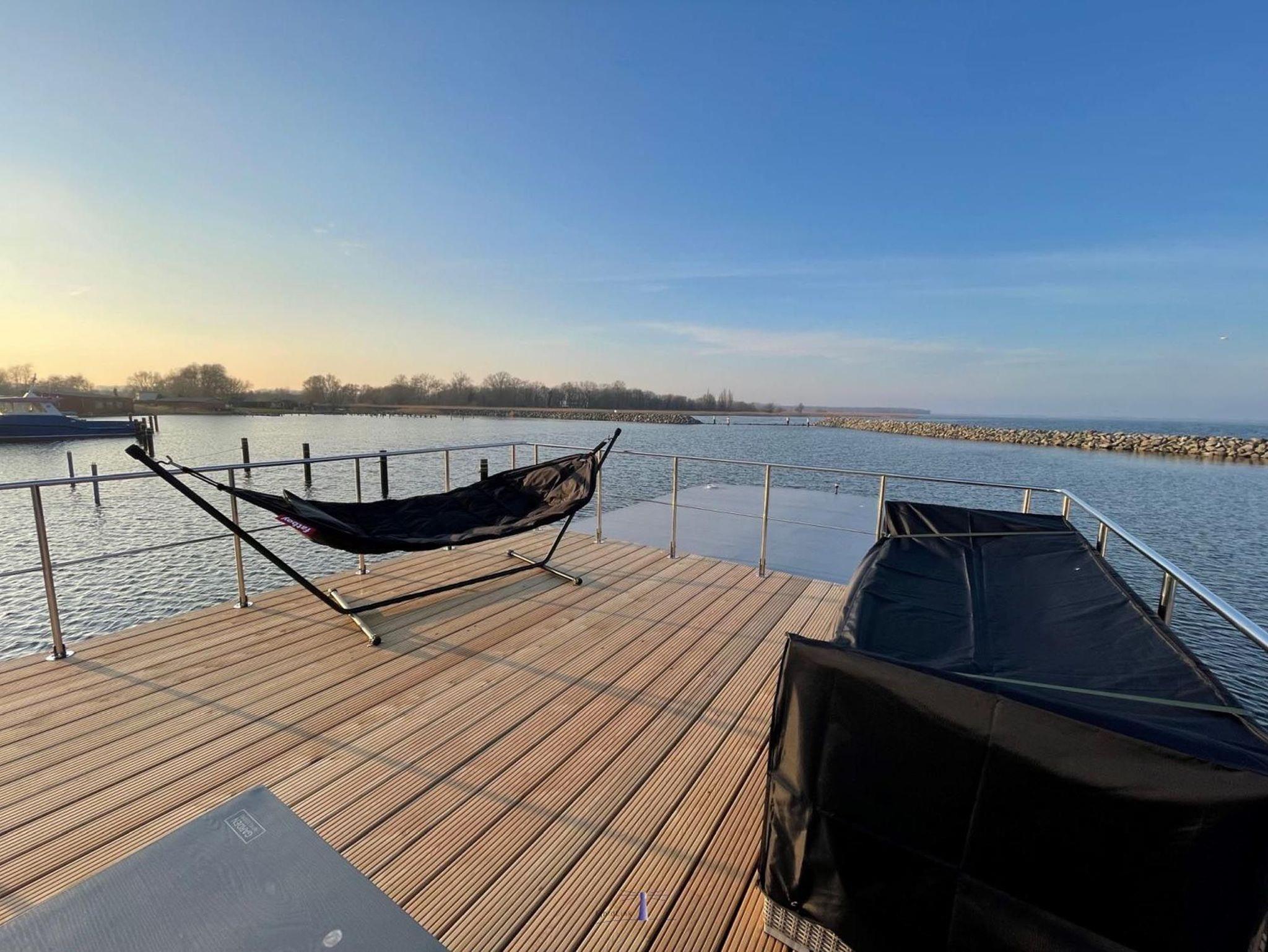 Die vollausgestattete Küche mit allen wichtigen Küchengeräten und einem Induktionsherd lässt keine Wünsche offen. Die Spülmaschine unterstützt Sie dabei, schnell wieder die wesentlichen Dinge des Urlaubes fokussieren zu können. An warmen Tagen laden sowohl die zwei Sonnenterrassen vor und hinter dem Wohnaufbau als auch die Dachterrasse zum Entspannen und Sonnenbaden ein. Auf dieser haben Sie einen atemberaubenden Blick über den Barther Bodden bis zur vorgelagerten Halbinsel Fischland ? Darß - Zingst und können wunderbare Sonnenuntergänge genießen.