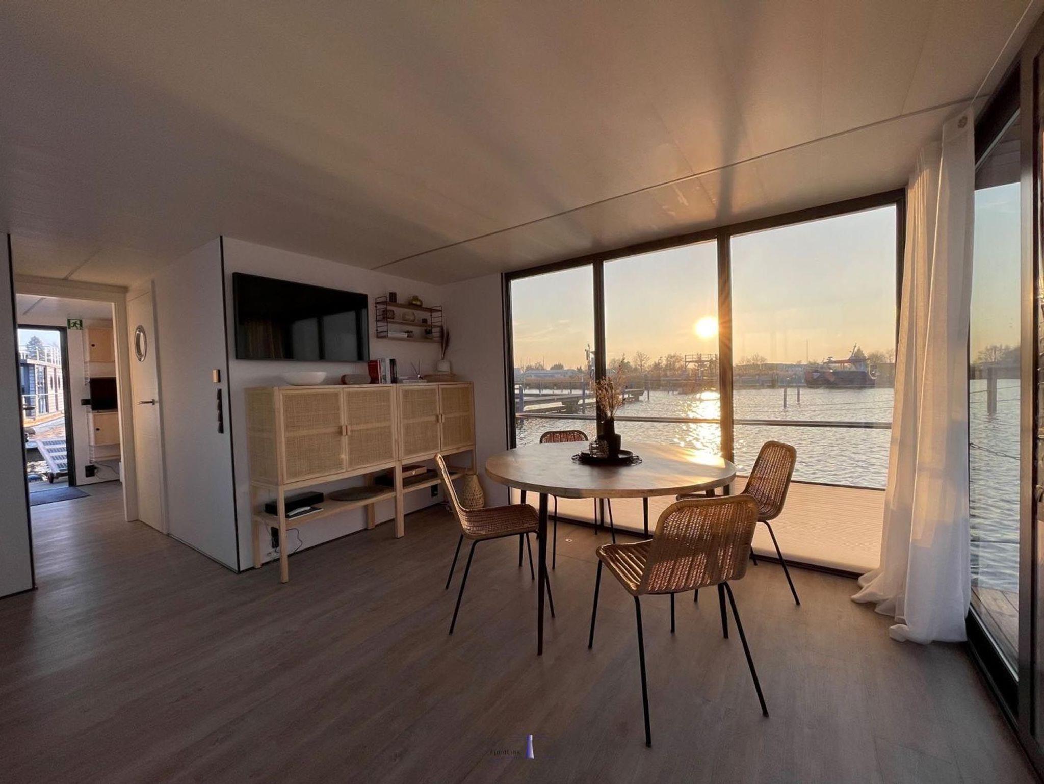Im Inneren des Hausbootes finden Sie neben dem Wohnraum mit Fußbodenheizung für kalte Tage zwei Schlafräume mit je einem Doppelbett sowie ein modernes Duschbad. Genügend Stauraum finden Sie in den Schränken sowie in den Schubladen unter den Betten.