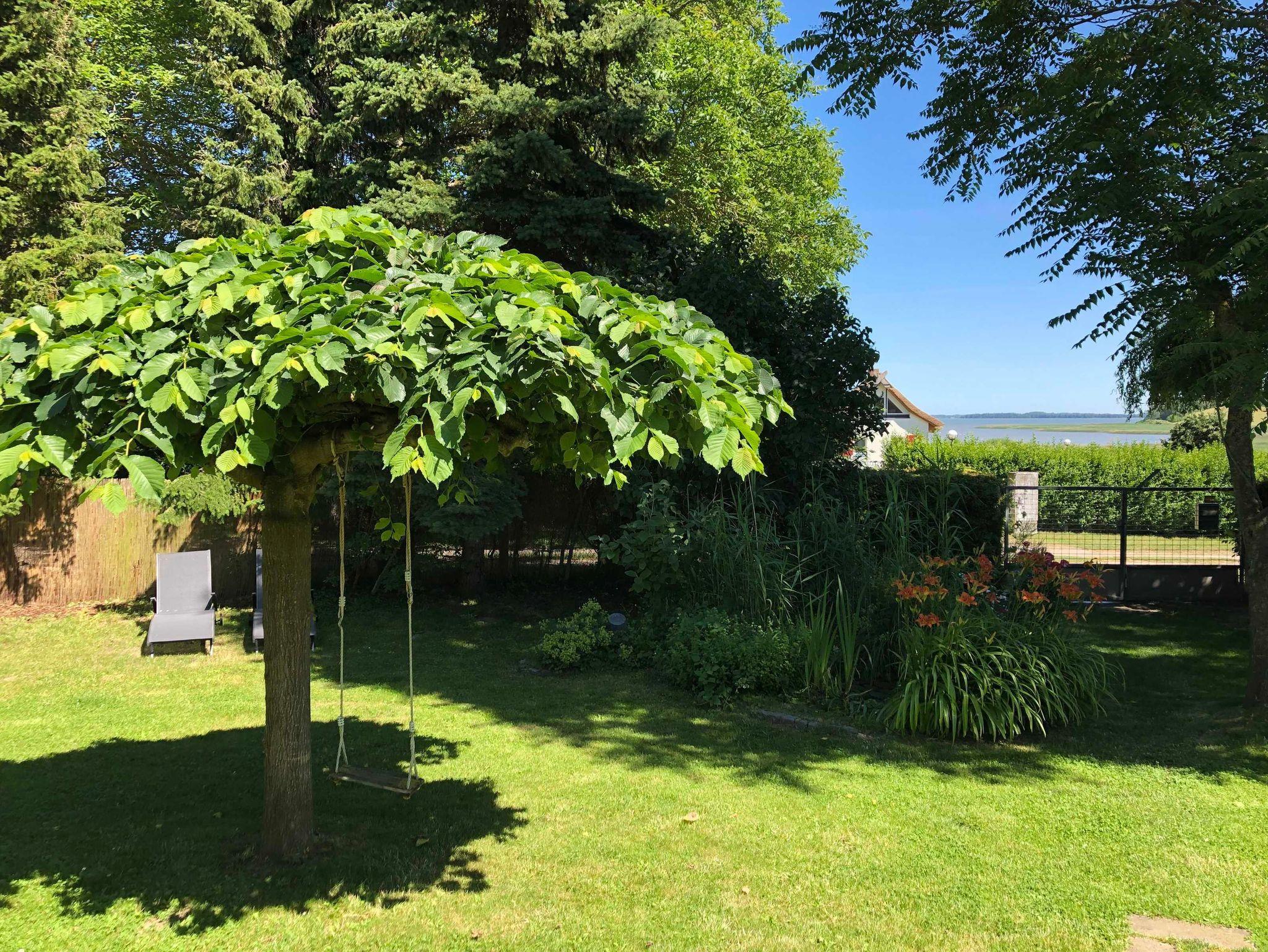 Erholung pur! Reetgedecktes Ferienhaus mit direktem Wasserblick. Naturverbundener Urlaub mit der ganzen Familie. Ostseestrand, Meer und Wellen. Das reetgedeckte, zweigeschossige Ferienhaus ist umgeben von einem großen Garten, der zum Grillen und Spielen einlädt. Von der großen Terrasse aus genießt man den wundervollen Blick auf den Bodden. Schöne Terrassenmöbel, Sonnenliegen und ein Grill sind ebenfalls vorhanden.
