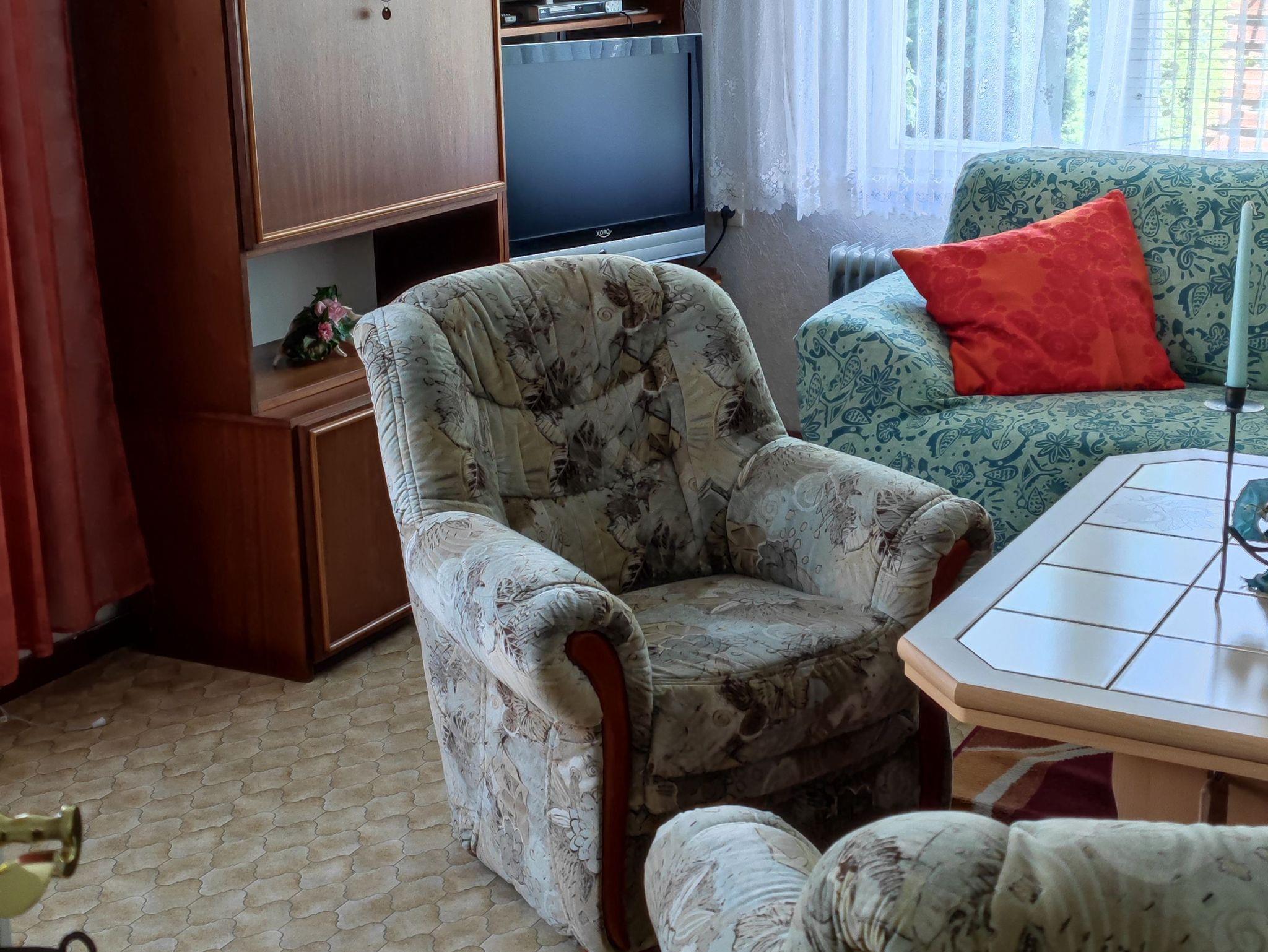 2 Schlafräume, 1 Wohnzimmer, Badezimmer mit Dusche. Das Ferienhaus befindet sich im Garten des Grundstück.