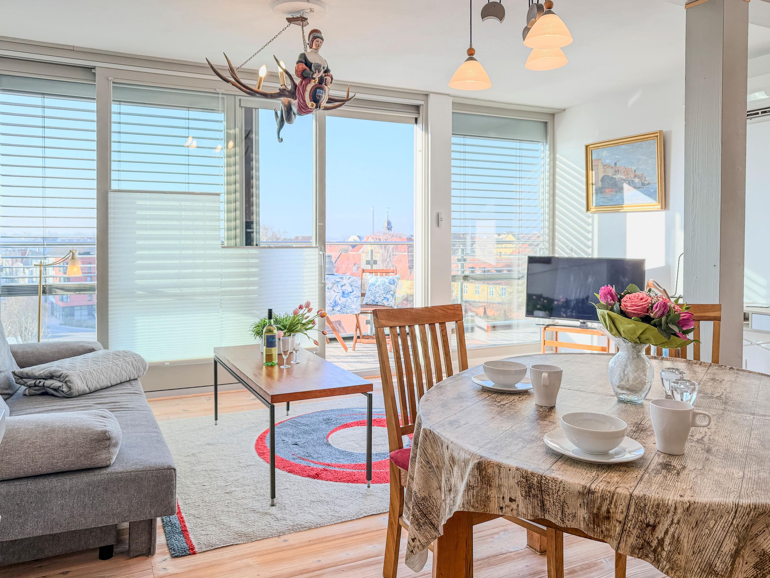 Dieses stilvolle Apartment im 5. Obergeschoss bietet auf 56 m² Platz für bis zu 3 Personen und besticht durch seine hochwertige Ausstattung sowie die ideale Lage in der Nähe des Barther Hafens.