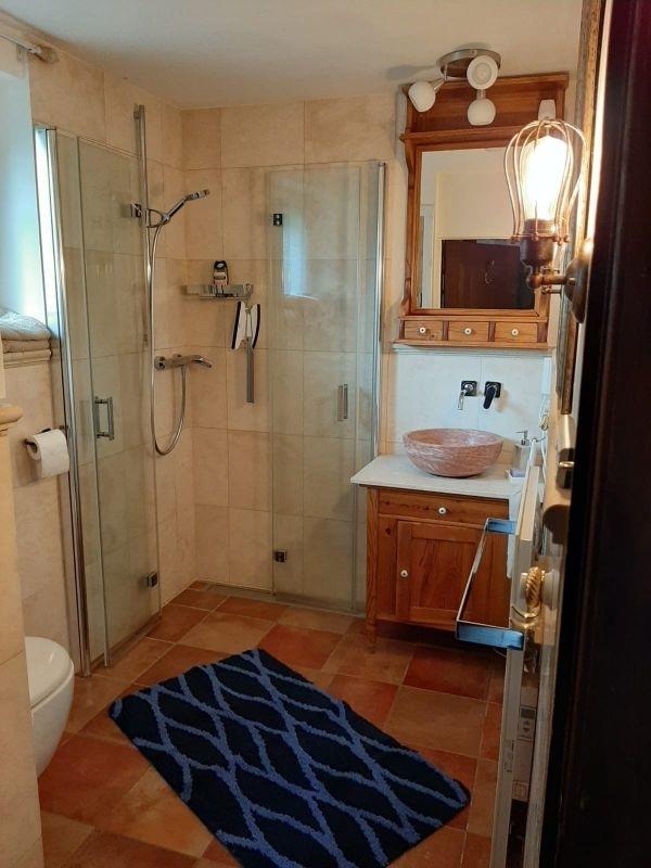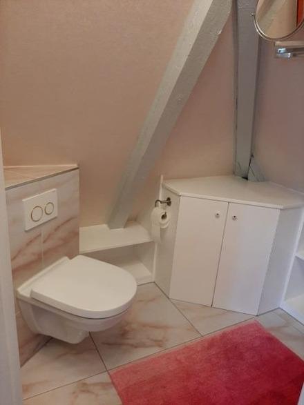 Im Erdgeschoss ist darüber hinaus das neuwertige Bad mit Hänge-WC und ebenerdiger Dusche.