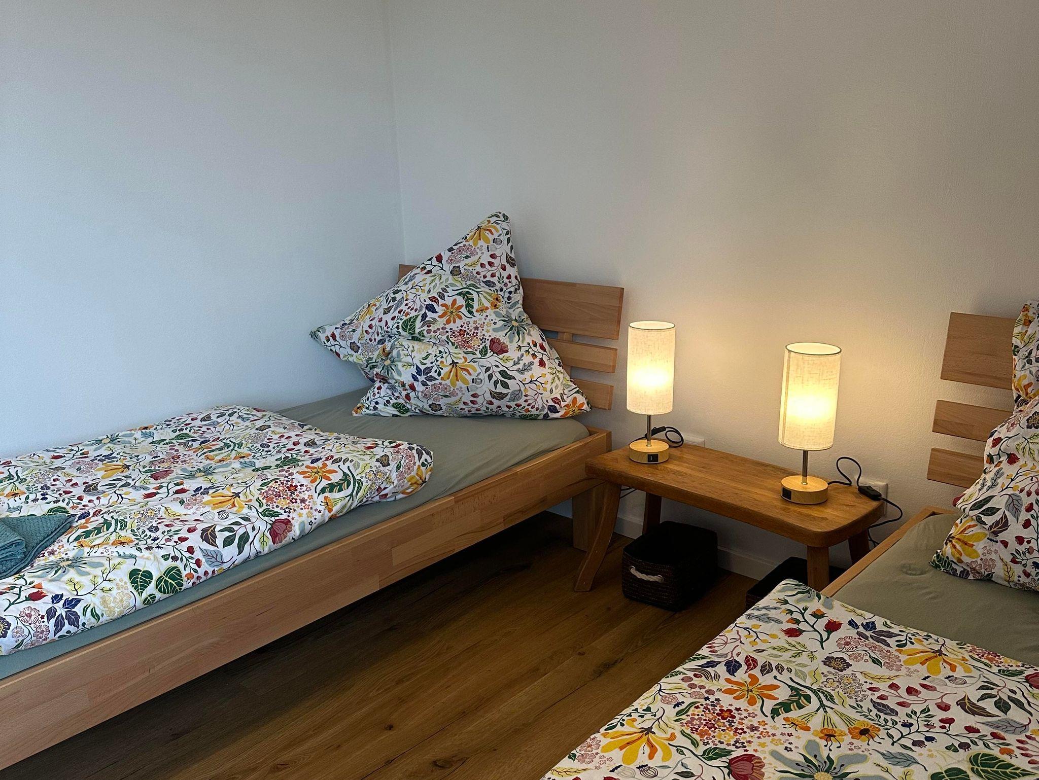 Das Haus Eifelkind verfügt über drei Schlafzimmer, zwei mit jeweils einem Doppelbett und eins mit zwei Einzelbetten (90x200), die auch problemlos zusammengeschoben werden können. Ein Schlafzimmer ist mit einem Arbeitsplatz ausgestattet, sodass auch mobiles Arbeiten aufgrund des vorhandenen wlans problemlos möglich ist. In einem Schlafzimmer ist es aufgrund der Größe möglich, ein Kinder- oder Beistellbett zuzustellen.