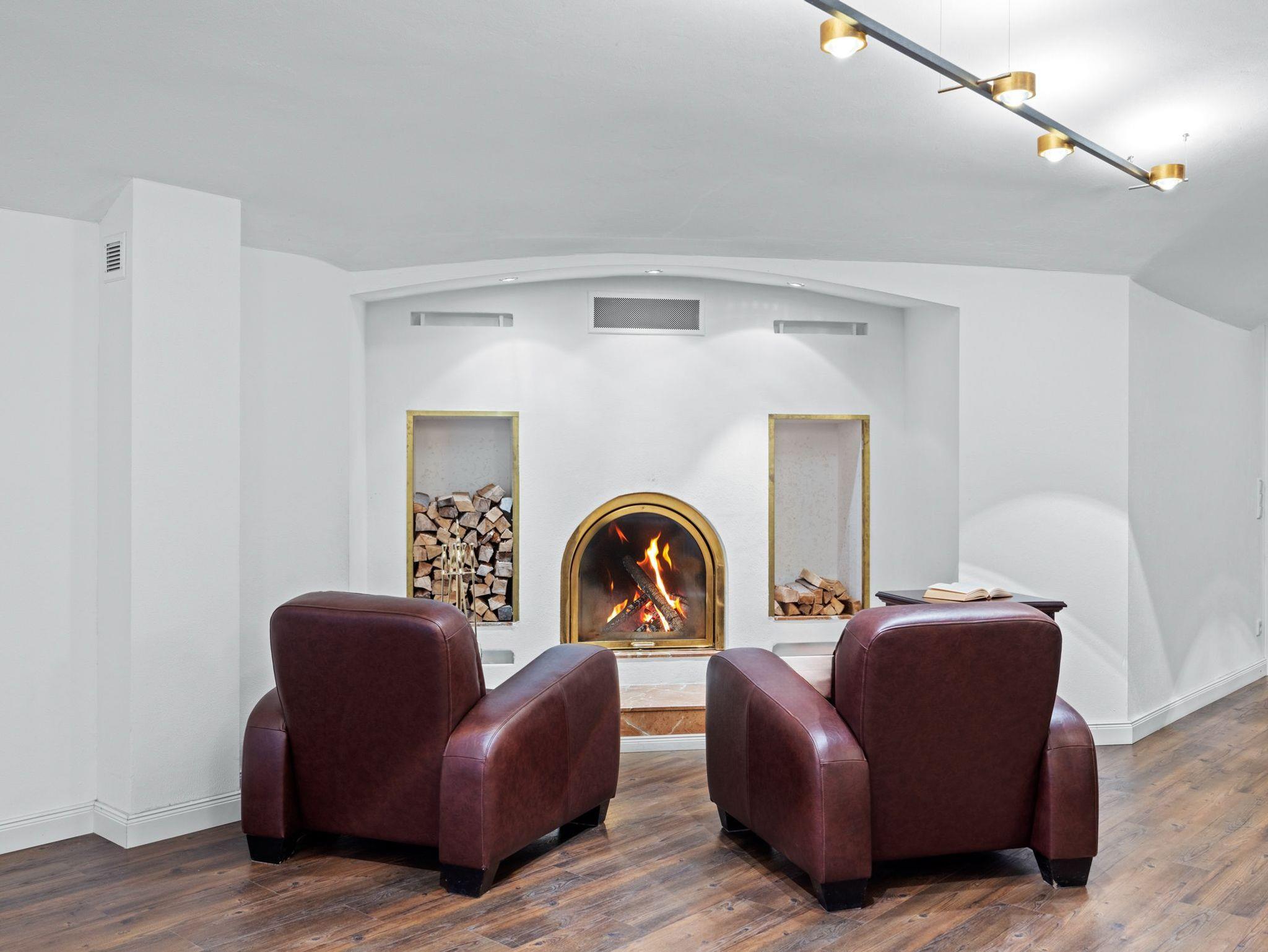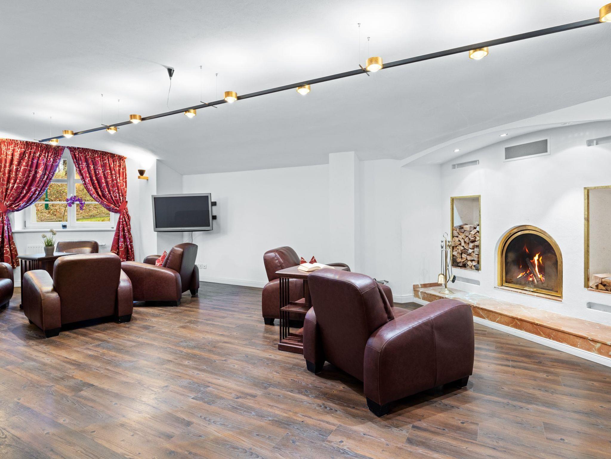 Das Kaminzimmer, eine Treppe tiefer, ist jederzeit zugänglich und Holz liegt schon für Sie bereit.