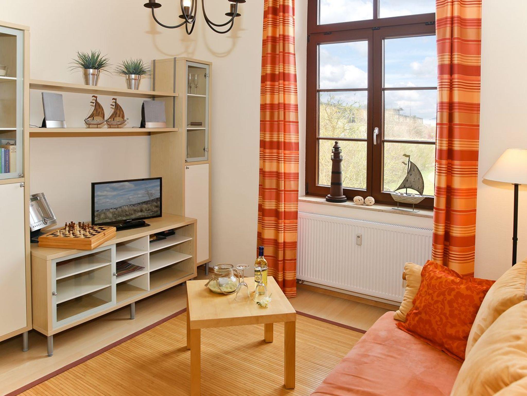 Die moderne 2-Zimmer-Ferienwohnung befindet sich im Hochparterre und zur Vorderseite des historischen Gebäudes. Sie ist für 3 Personen ausgestattet