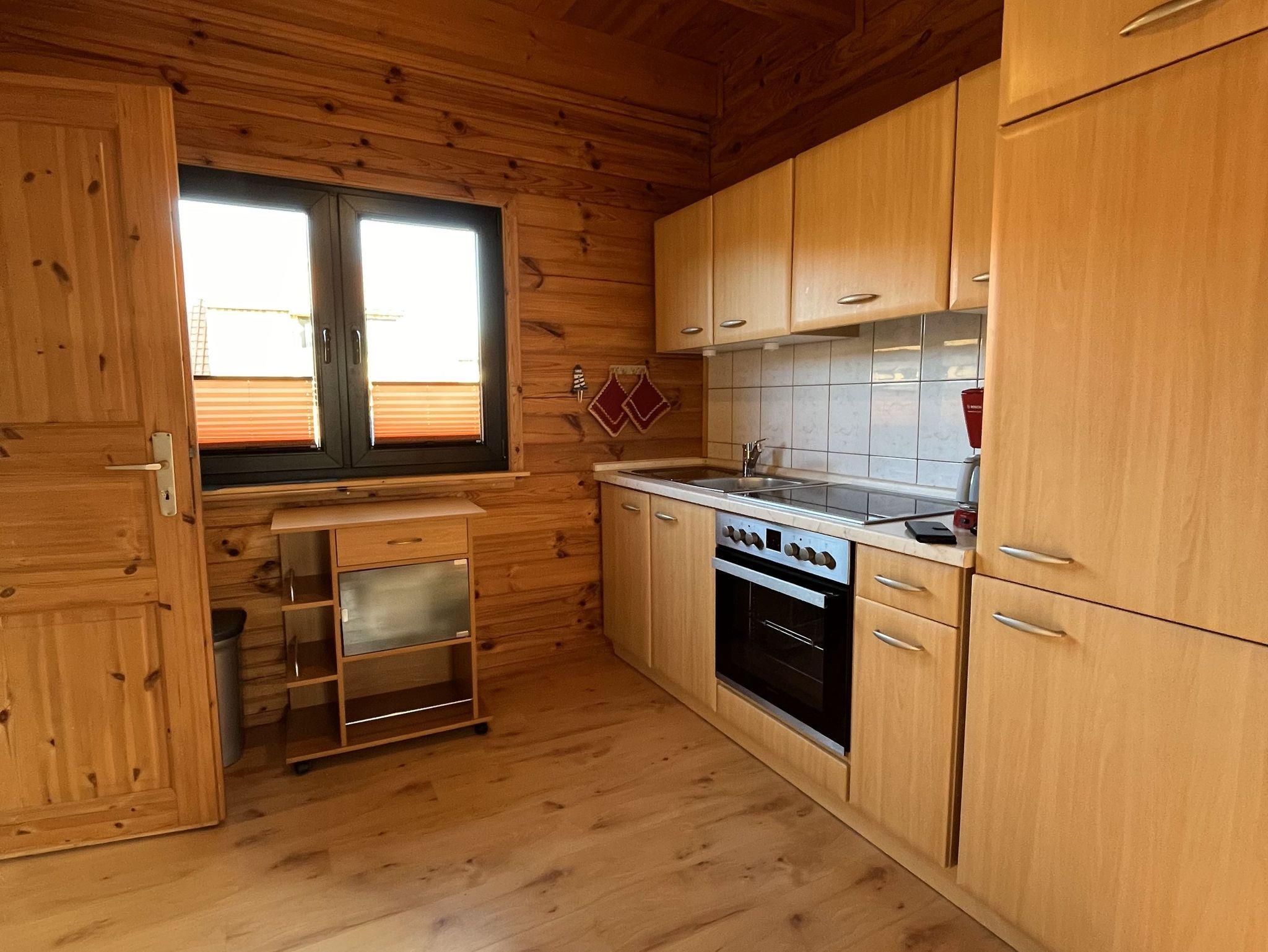 3-Raum-Holz-Ferienhaus (70m²; max. 4 Pers. + 1 Baby) mit Gartengrundstück.