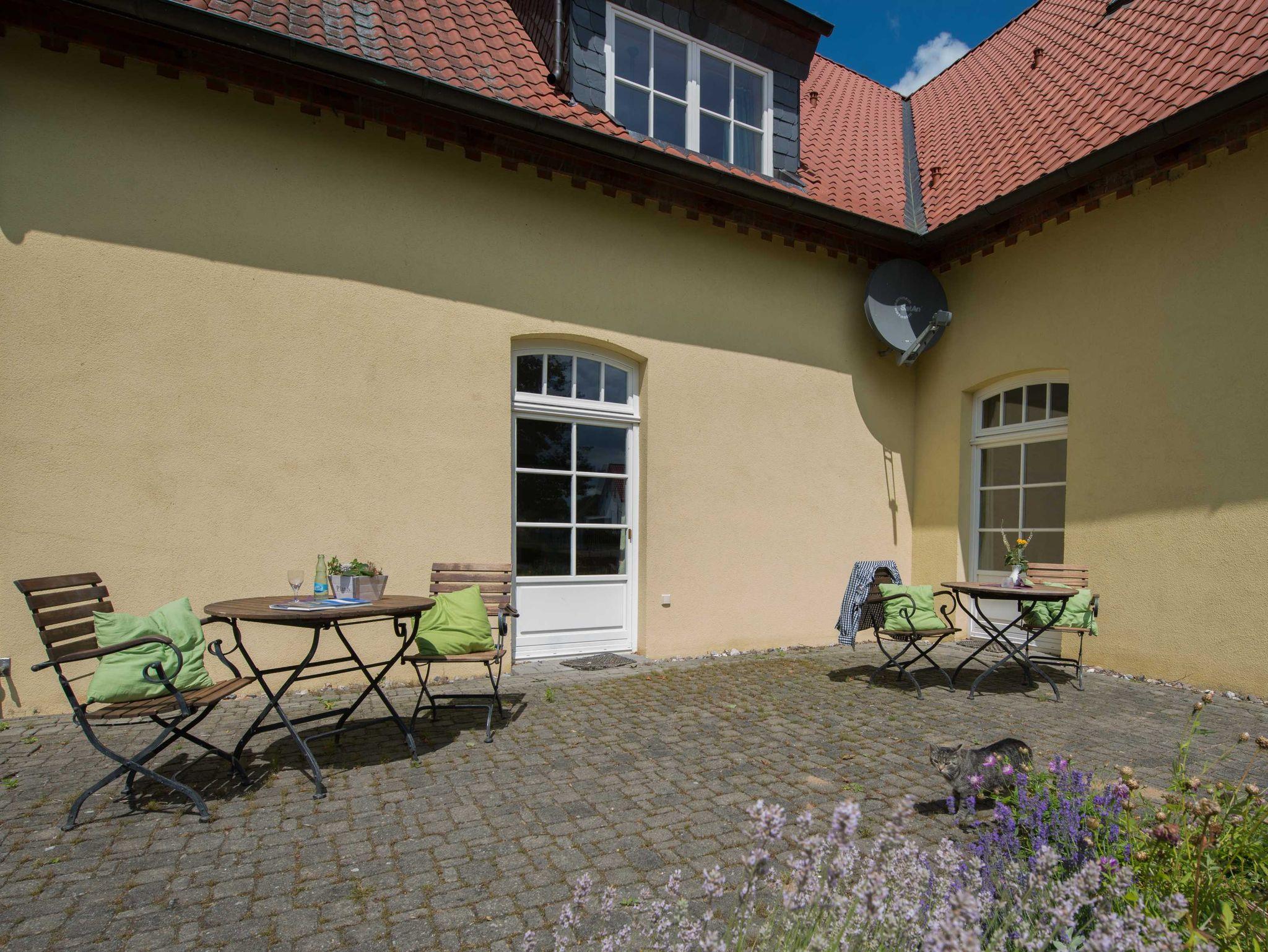 Mit Miniküche und Mikrowelle, Bad mit Du/WC. Sat-TV, Internetzugang W-LAN. Fußbodenheizung. Eine große Gemeinschaftsterrasse und der weitläufige Garten mit Blick auf die Ostseebucht Salzhaff.
