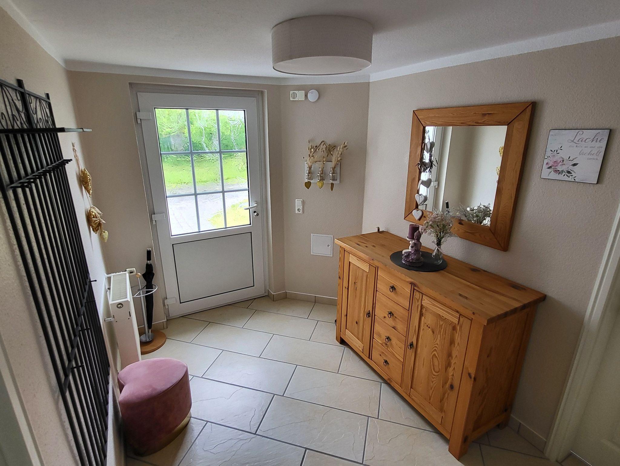 • Das Ferienhaus verfügt über einen Flur, eine große Küche (voll ausgestattet), ein großes Wohnzimmer mit Ledercouch und Lederfernsehsessel, zwei Schlafzimmerm (in einem sind die Betten trennbar), einer Sauna mit Ruheraum, einem Wirtschaftsraum (mit Waschmaschine, Trockner, Gefrierschrank), einer ca. 50m² großen Südwestterrasse, einer sehr großen Wiese und einer Grillhütte (mit Tisch und Bänken).