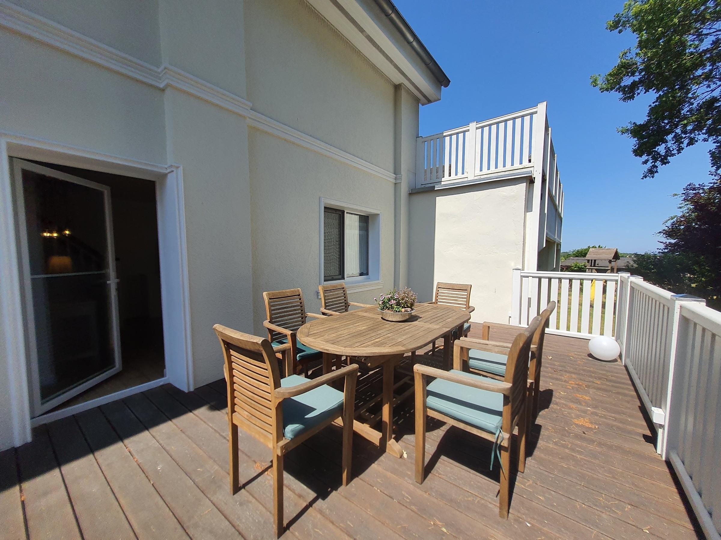 Mit ca. 55 m² ist die Wohnung "Kranich" eine der größeren Wohnungen im Haus Ostseebrise. Über 2 Etagen teilt sich die Wohnung in einen gemütlichen Wohnbereich sowie eine offene Küche mit angeschlossenem Esstisch im Erdgeschoss und den Schlafbereich im oberen Geschoss auf. Zusätzlich gehört zu dieser Wohnung eine ca. 32m² große Terrasse. Klare Strukturen und liebevolle Details sorgen in Ihrem Urlaub für Wohlfühlatmosphäre.