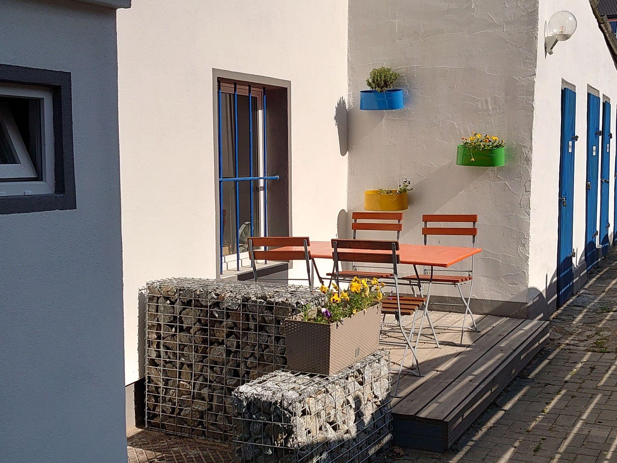 Zum Objekt gehört ein eigener Parkplatz, Garten mit Sitzmöglichkeit, sowie kleiner Innenhof mit Sitzecken. In den Wohnungen selbst gibt es Küchen mit üblichen Geräten zur Selbstversorgung (Supermarkt gegenüber) und teils Esstresen für einen schnellen Start in den Tag. Bäder mit Dusche, Wohn- & teils Esszimmer und Schlafzimmer oder auch Kinderzimmer mit Doppelstockbetten, sodass Sie bis zu acht Personen entspannt unter bekommen. Für Business Gäste haben wir Wohnungen mit Schreibtischen und schnellen Internet, neben W-LAN gibt es teils auch Lan-Dosen.