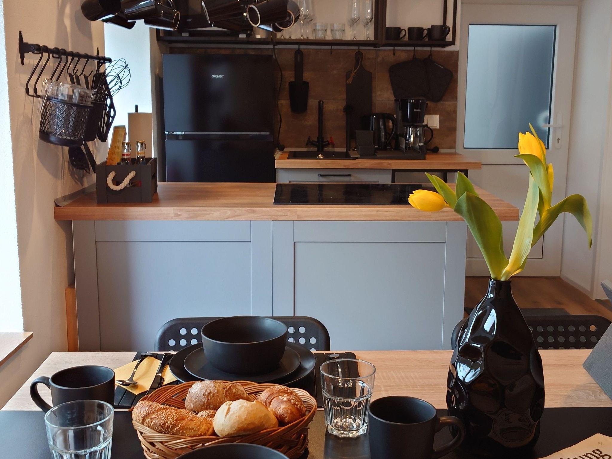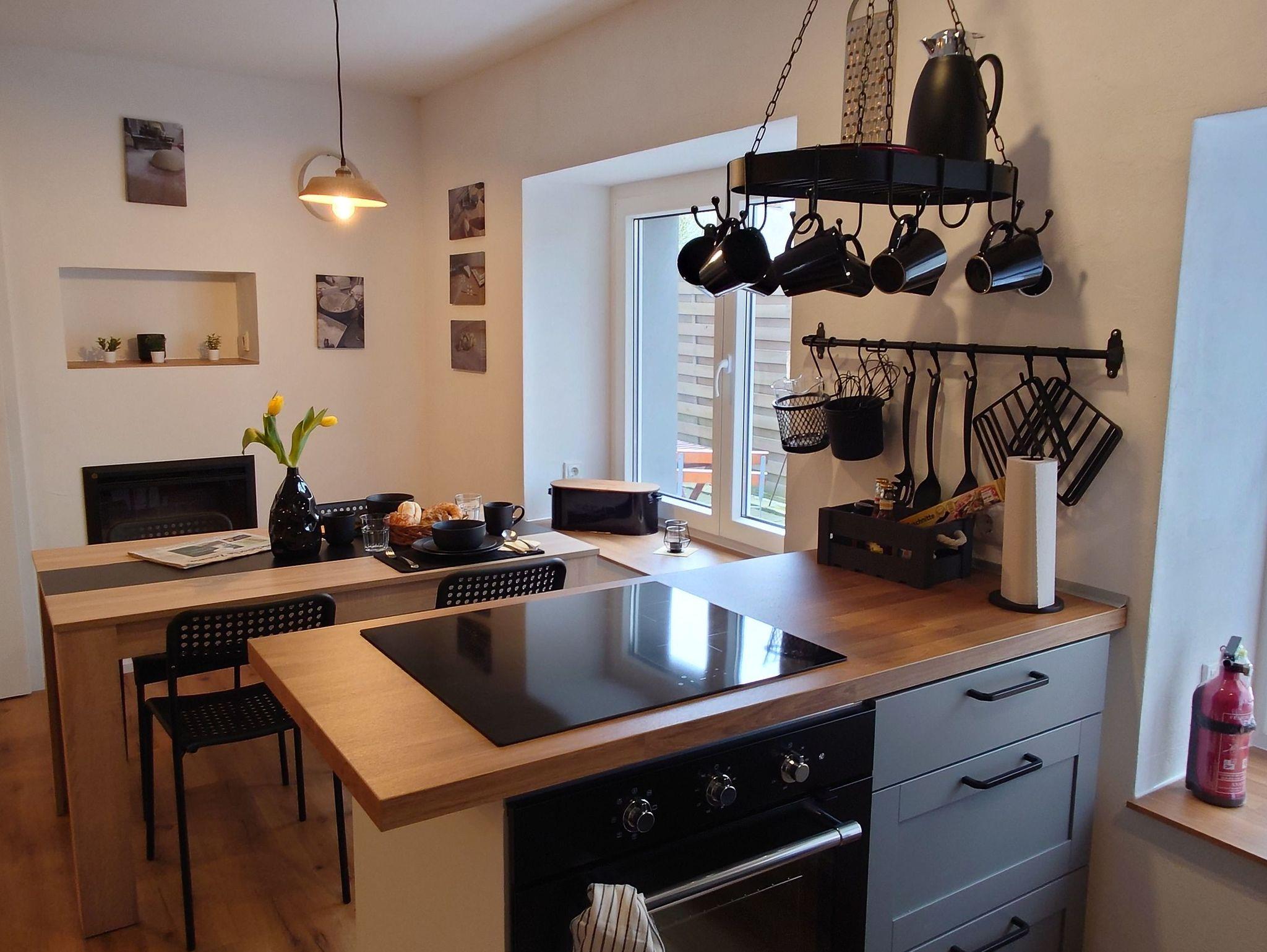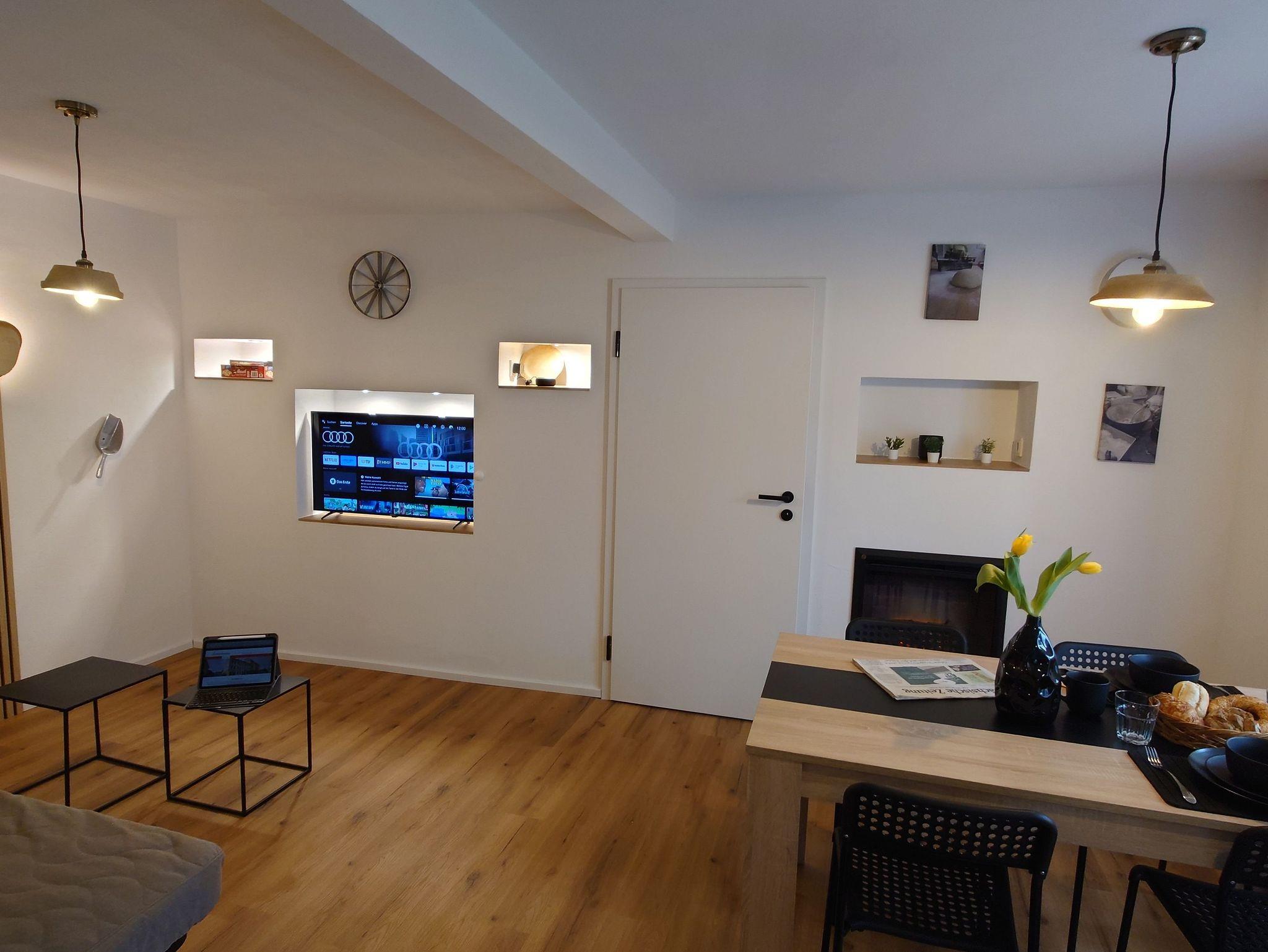 Ein Wohnraum mit Kamin, offene moderne Küche mit neuster Technik bis hin zu Alexa & Smart TV, sorgen für einen komfortablen Aufenthalt. Zudem ist die Wohnung ebenerdig und Barriere frei.