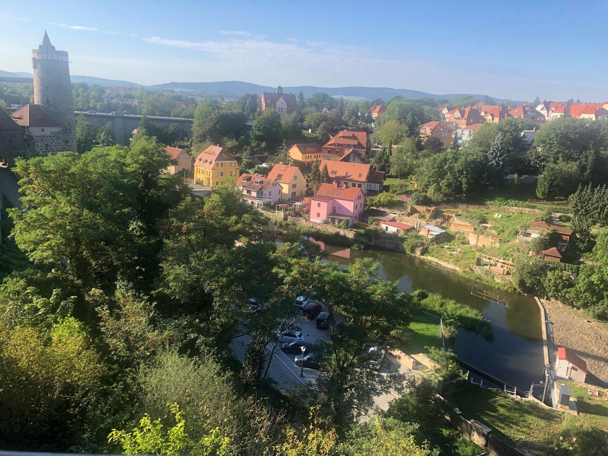 Genießen Sie die Aussicht ins Oberlausitzer Bergland und über das Flusstal in einer Höhe von 30 Metern über der Spree. Die großzügige Suite mit ihren insgesamt 67m² bietet viel Raum, um Ihren Urlaub genießen zu können. Das Bad mit Dusche & WC ist separat vom Flur aus erreichbar. Der Wohnbereich, mit seiner modernen Wohnküche, einem Ess-und Sitzbereich lädt zu entspannten Abenden in Ihrer Suite ein. Ihr Schlafzimmer ist separat erreichbar und bietet mit seiner Aussicht, den Natursteinmauern und dem Boxspringbett aus hochwertigen Materialien eine einzigartige Gemütlichkeit. Auf dem Sofa Bett schläft man gemütlich mit einer Breite von 142 cm.