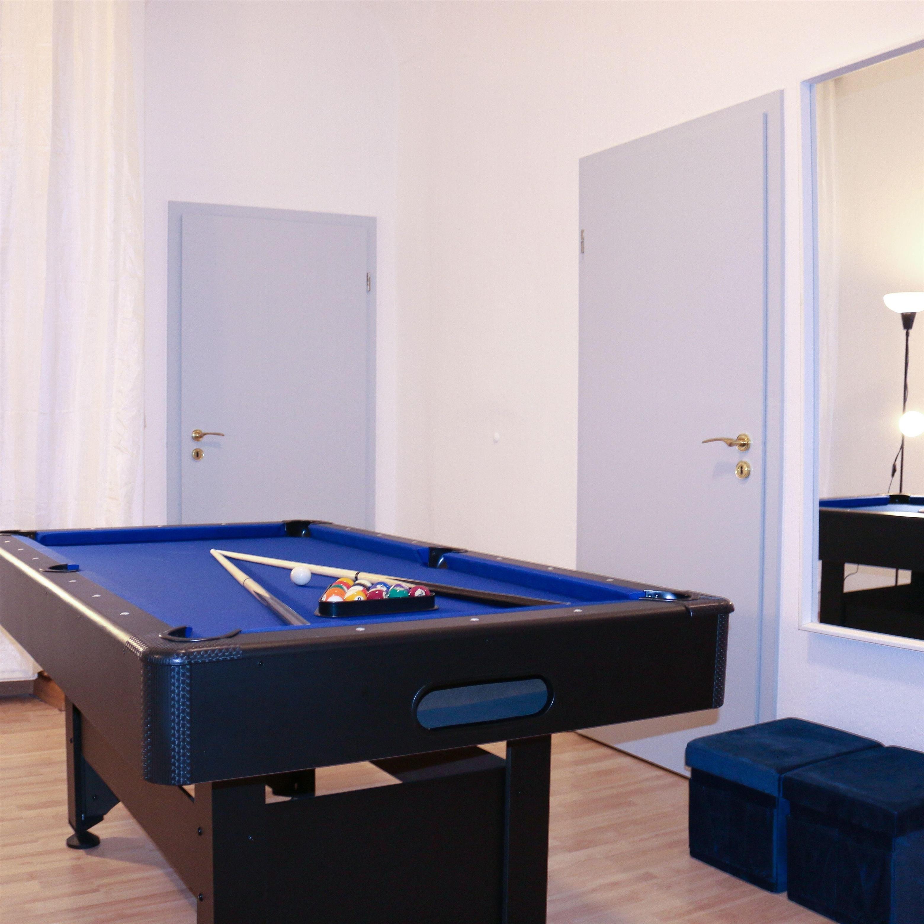4-Raum Wohnung, bis zu 8 Personen, Billardtisch, Tischtennis, Wlan, Arbeitsplatz mit höhenverstellbaren Tisch, privater Parkplatz, Waschmaschine, Trockner, Spülmaschine, Smart TV, Bad mit Fenster, Bidet, Badewanne, Schlafsofa, Kaffeevollautomat,..