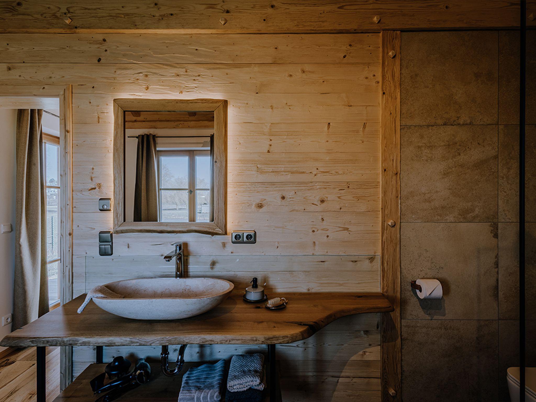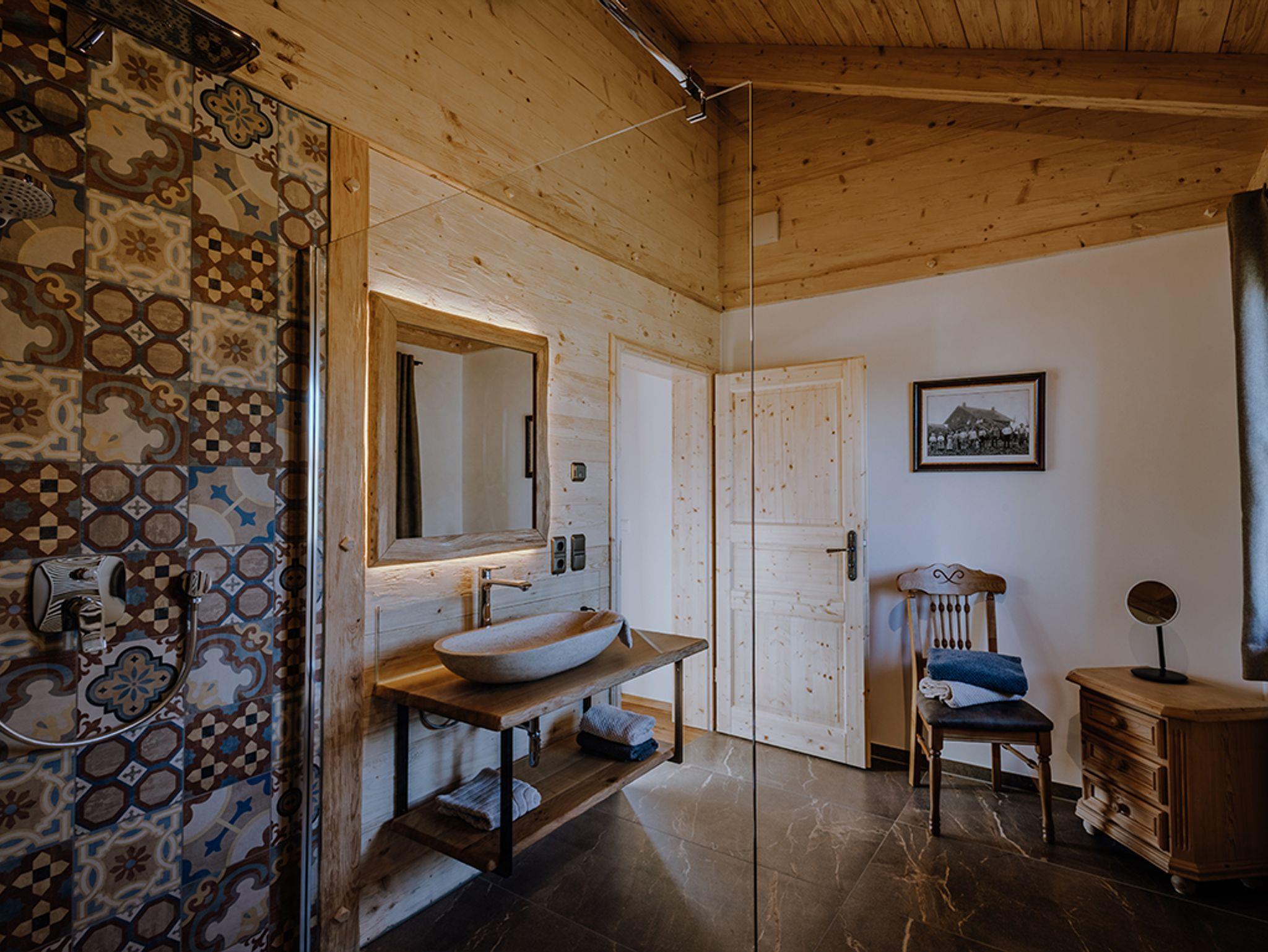 Erholen sie sich in unserem „Chalet am Zwetschgenbaum“. Dieses besteht aus einem großen offenen Wohn- und Essbereich mit voll ausgestatteter Küche, zwei Schlafzimmer mit Doppelbett und zwei Badezimmer mit Dusche. Die Schlafzimmermöbel aus Zirbenholz sorgen für erholsamen und gesunden Schlaf. Zusätzlich schaffen zwei hochwertige Schlafsofas im Wohnbereich, Platz für 4 weiteren Personen. Entspannen Sie auf unserer großzügigen Holzterrasse im Softub-Whirlpool und fühlen Sie sich wie zu Hause, bei uns „Dahoam“ am Duschl-Hof.